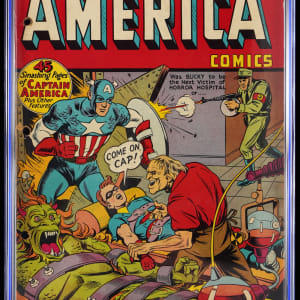 The creators of this Golden Age comic are an absolute dream team, noted on the CGC grading label, with "Joe Simon and Jack Kirby stories, Jack Kirby, Joe Simon, Al Avison and Al Gabriele art, Alex Schomburg cover. Captain America text story by Stan Lee. Captain America pin-up on back cover. Hypodermic needle cover.".