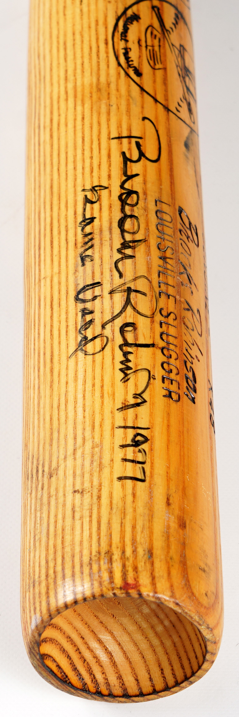 A 16X consecutive Gold Glove winner, and 15X consecutive AL All-Star, Robinson has signed on the barrel of this bat with a decent degree of potency, and he has included the inscription "1977 Game Used". Robinson's illustrious career was coming to an end, at the time he used this bat. The labeling period is confirmed as 1976, an undeniable origin in light of the distinctive Bicentennial logo, and accompanying certification. His 1977 inscription indicates he still had this bat during his final MLB season, and it has to be one of the last bats he ever used. PSA/DNA has assigned this prize bat a game use grade of GU 9.5.
