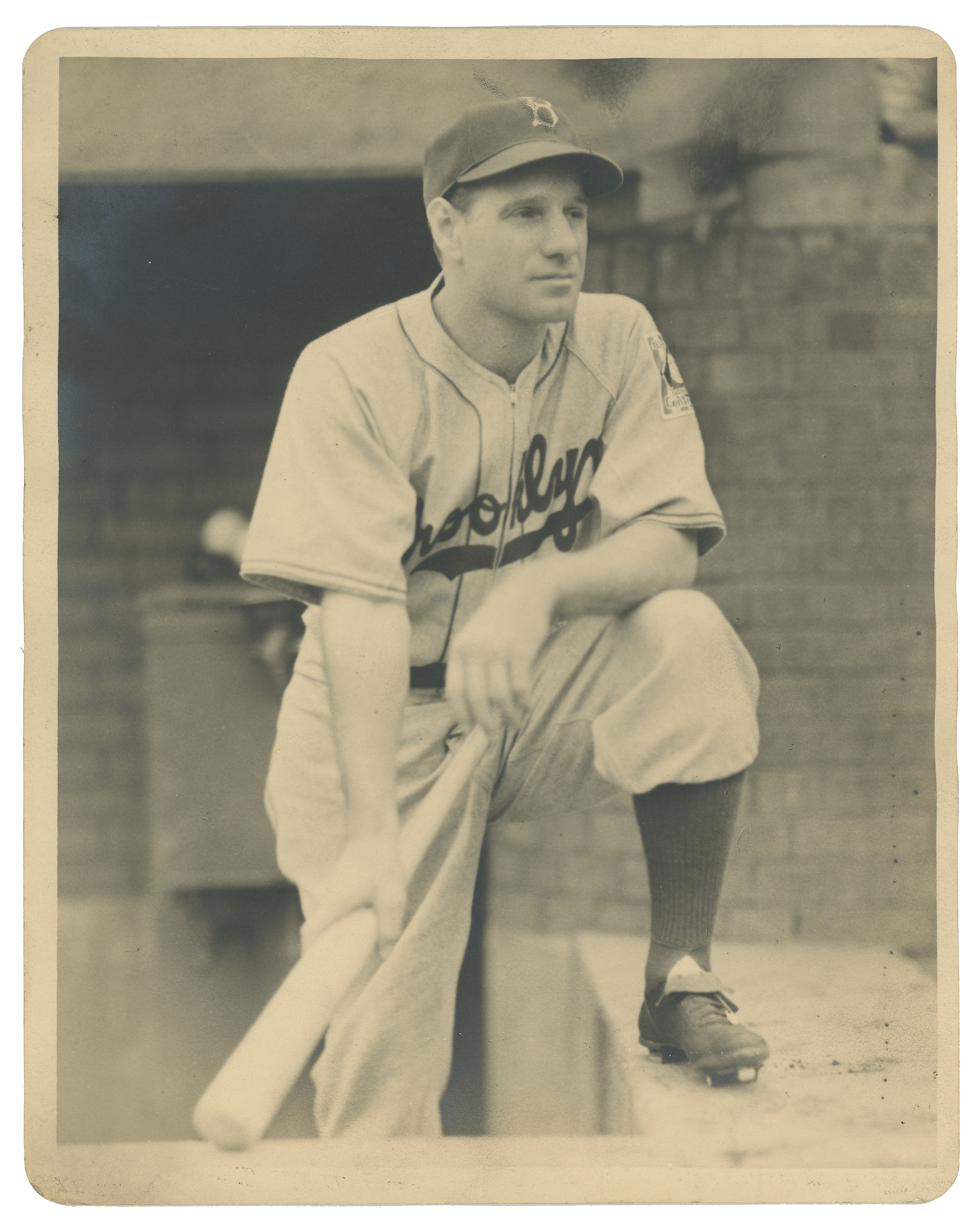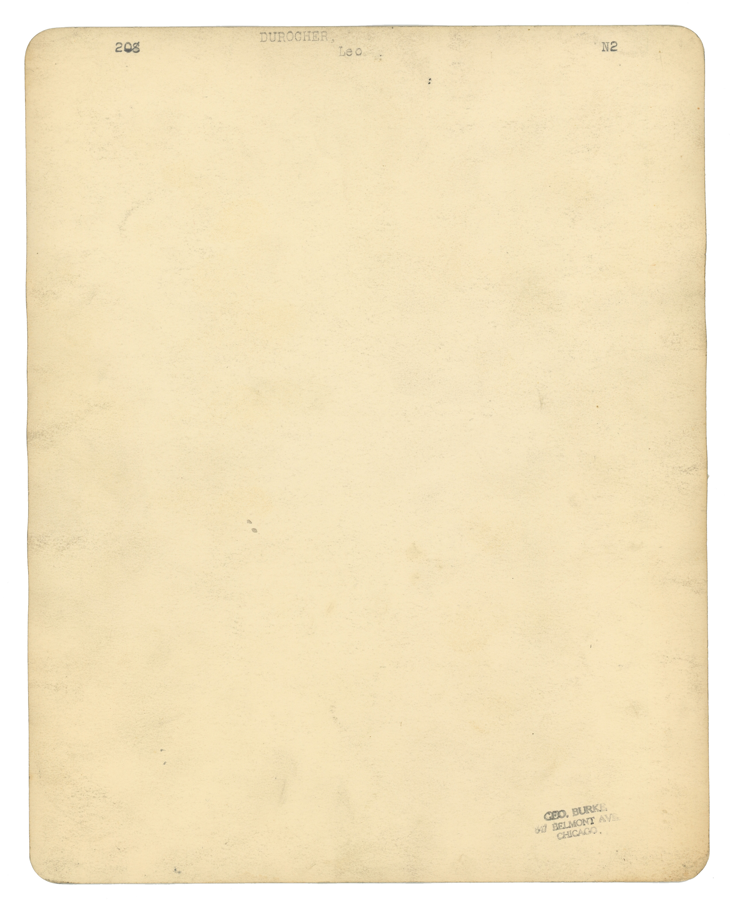 Gazing at this classic George Burke photograph, one could almost believe Leo Durocher was a serene being. Don't you believe it. Known far and wide as "Leo the Lip", Durocher was a firebrand, always ready to give umpires, the press, and baseball higher-ups a strong piece of his mind, and some choice words from his colorful vocabulary. He was also a great baseball man, that knew what winning was about. Formatted with rounded corners, this 8" x 10" matte print pictures Durocher in a Brooklyn Dodgers uniform. Durocher signed with the Dodgers in 1938, and served as a player and manager from 1938-1948, dating this photograph to the defined period. Stamped on the back are a George Burke photographer's credit, and the identifiers "208, Durocher, Leo, N2". Condition is pleasing, with a clean surface, and moderate wear on the perimeter.