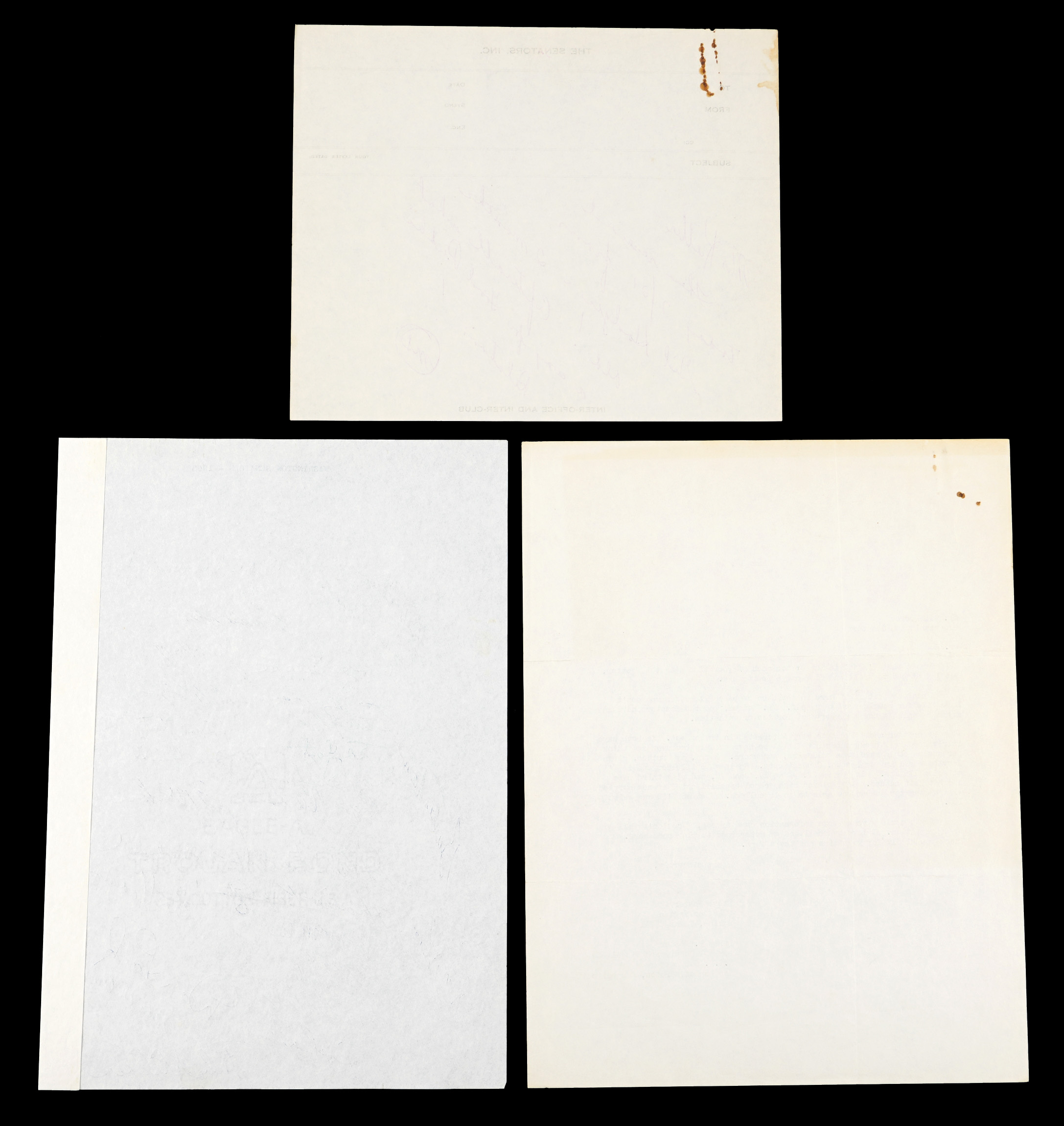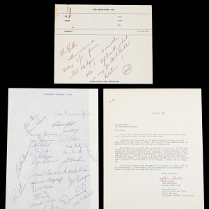 A slowly improving expansion team is collected, with this 1965 Washington Senators team-signed sheet. Under manager Gil Hodges, the second Senators franchise was rising from annual dead-last finishes, climbing to eighth place in 1965, in an expanded ten-team American League. This vintage period sheet is a crisp host to (29) total signatures, including manager Gil Hodges, and star slugger Frank Howard. These distinct signatures are nearly uniform in quality, as neat blue ballpoint pen applications.