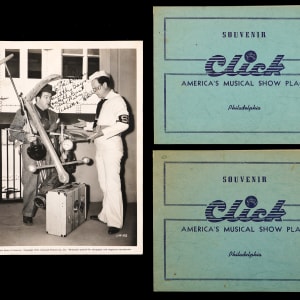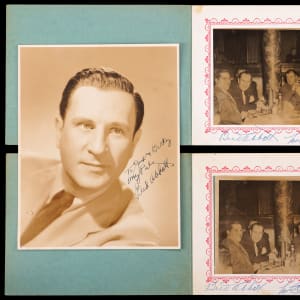 (2) Abbott (d.1974) and Costello (d.1959) dual-signed 7" x 5" souvenir photographs of the comedy duo having dinner with friends at the Click Club in Philadelphia. These identical photographs are housed in Click Club folders, with full name Abbott and Costello signatures on the bottom borders of the folders.