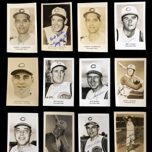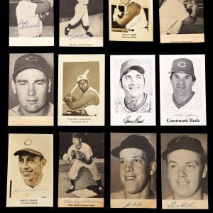 A future 500 Home Run Club member headlines these (44) 1950s-1970s Cincinnati Reds team-issued and postcard singles with (26) signed. Highlights include: