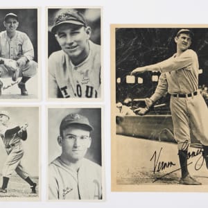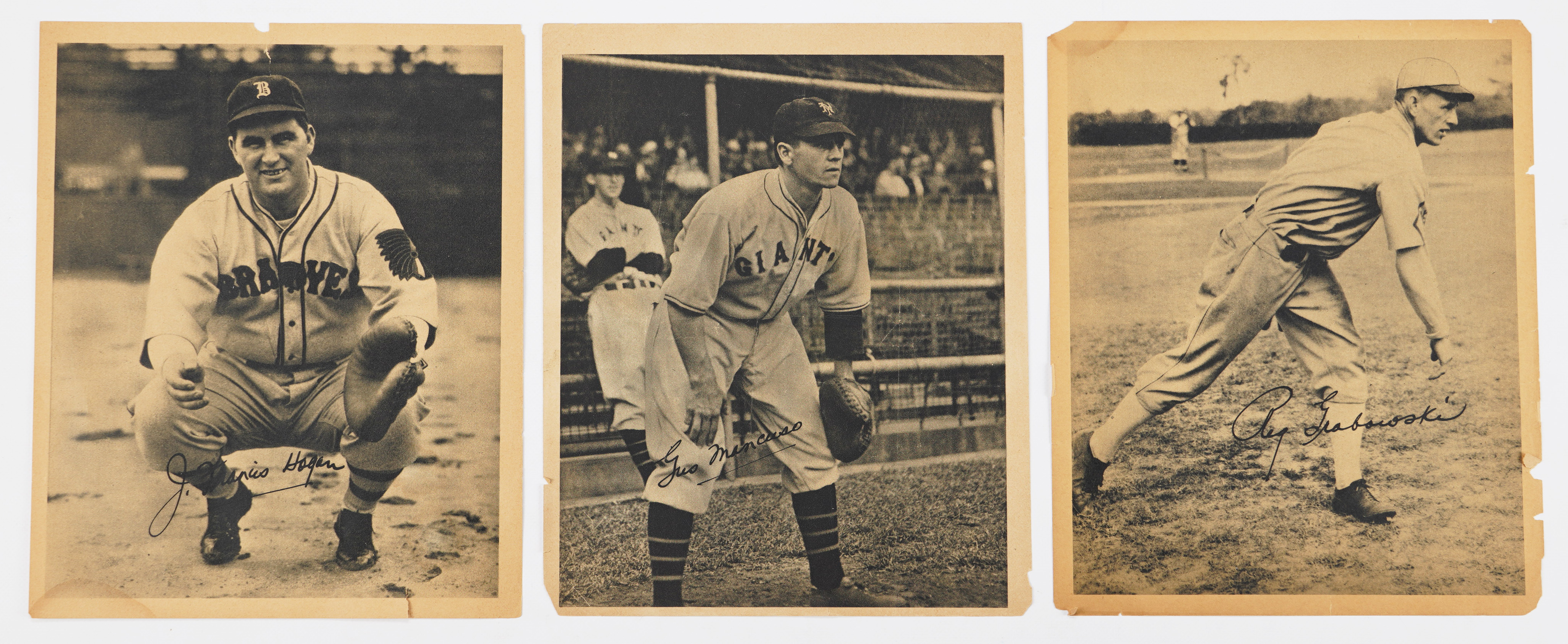 Supplement your pre-war collection with these nine 1934-1936 R310 Butterfinger & R313 National Chicle Fine Pen examples. Includes: 1934 R310 Butterfinger: (5 premiums) with Gomez (PR, tear), Grabowski (GD), Hogan (PR, tear), Mancuso (VG), Simmons (PR, edge chipping); 1936 R313 National Chicle Fine Pens: (4 cards) with Berry (FR, reverse typing), Dietrich (FR, reverse typing), Simmons (PR, reverse residue) and West (FR, reverse typing).