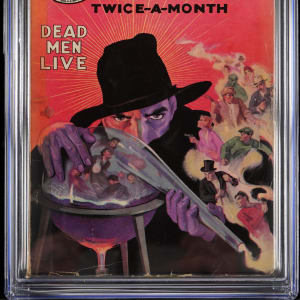 The result is satisfying, and the classic cover is both attractive and captivating. To date, this is the only example of this issue CGC has graded in a Universal holder, testifying to its considerable scarcity, and by obvious extension, it is therefore the highest graded example. Label notes credit the creators as "Cover by George Rozen, Tom Lovell art, Walter B. Gibson story".