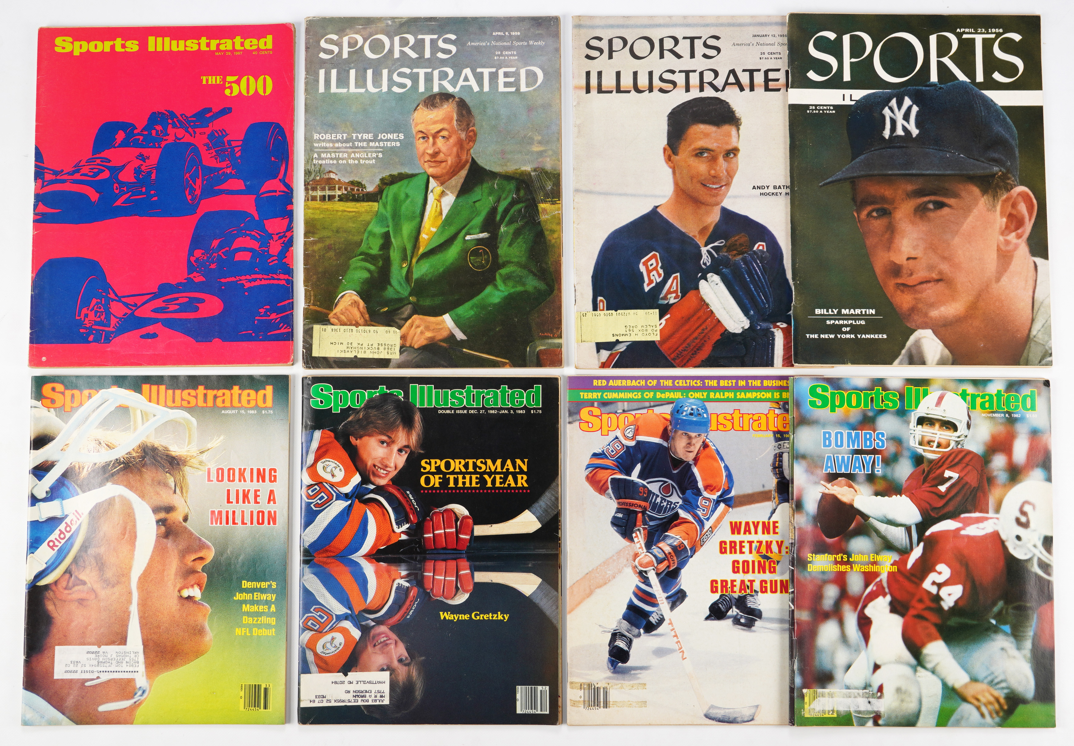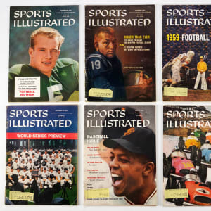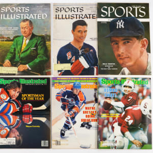 Score a healthy chunk of the leading sports publication’s output, with the capture of this 1956-1992 Sports Illustrated collection (84). Introduced in 1954, this venerable magazine is the longest-running sports periodical ever. The always timely SI has kept readers up to date on the sporting world’s biggest events for several generations, and this collection reflects its pertinent coverage, with photographs and articles detailing legends such as Willie Mays, Bobby Jones, Johnny Unitas, Wayne Gretzky, Billy Martin, Paul Hornung, John Elway, and a host of others. Condition ranges 90% VG to EX-MT, !0% lesser, with deference to most issues bearing address mailing labels on the front covers.
