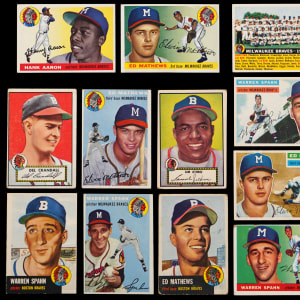 1955 Topps: (13 cards, average VG, includes 2 high numbers) with #31 Spahn (FR), #47 Aaron (PR, reverse paper loss), #155 Mathews (EX-MT);