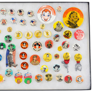 Saddle up for this extensive 1890s-1950s non-sport pinback and button collection of (65+) pieces covering a variety of “kid friendly” themes. Averages (EX to NM) quality throughout with some better or lesser. Highlights include: (4) 1896 High Admiral Cigarettes Yellow Kid, (2) 1896 Pepsin Gum Little Pinkies pins, 1922 Baltimore Evening Sun Andy Gump for Congress pin, (2) 1950s Butternut Bread Cisco and Pancho badges, (3) 1950s Heidi, Pardner! pins, (2) 1950s Hopalong Cassidy newspaper related, (2) 1950s “It’s Howdy Doody Time” jumbo pins, (19) 1950s “PM” style Cowboy/Western pins with (2) Gene Autry, (5) Hopalong Cassidy (one with charm and ribbon), (4) Roy Rogers and others; (14) 1950 Rootie Kazootie Club pins (6 different characters), 1950s Sunbeam Bread Gene Autry pin along with (6) assorted 1950s Davy Crockett and Lone Ranger pins from various manufacturers. A close review of the provided images is advised.