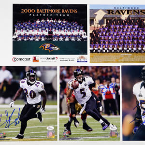 Also: Joe Flacco, Jamal Lewis and Tony Siragusa, plus (2) unsigned team photos - 2001 Super Bowl XLVIII Champions and 2012 Super Bowl XXXV Champions.
