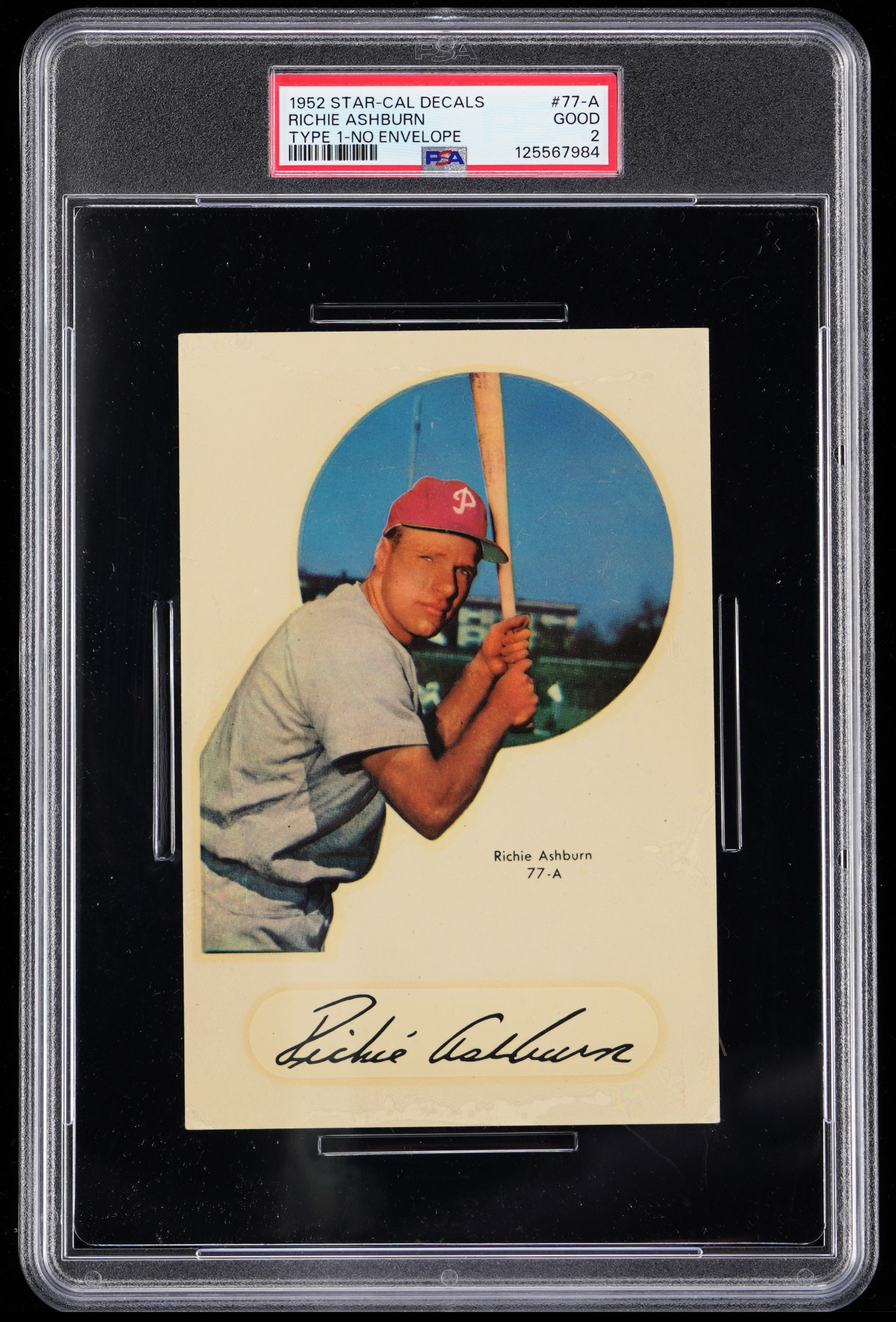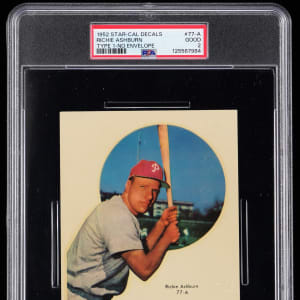 Graded GOOD 2 by PSA. Philadelphia Phillies Hall of Famer Richie Ashburn. This Type 1 (single player) variant is absent of its original envelope.