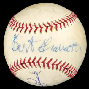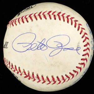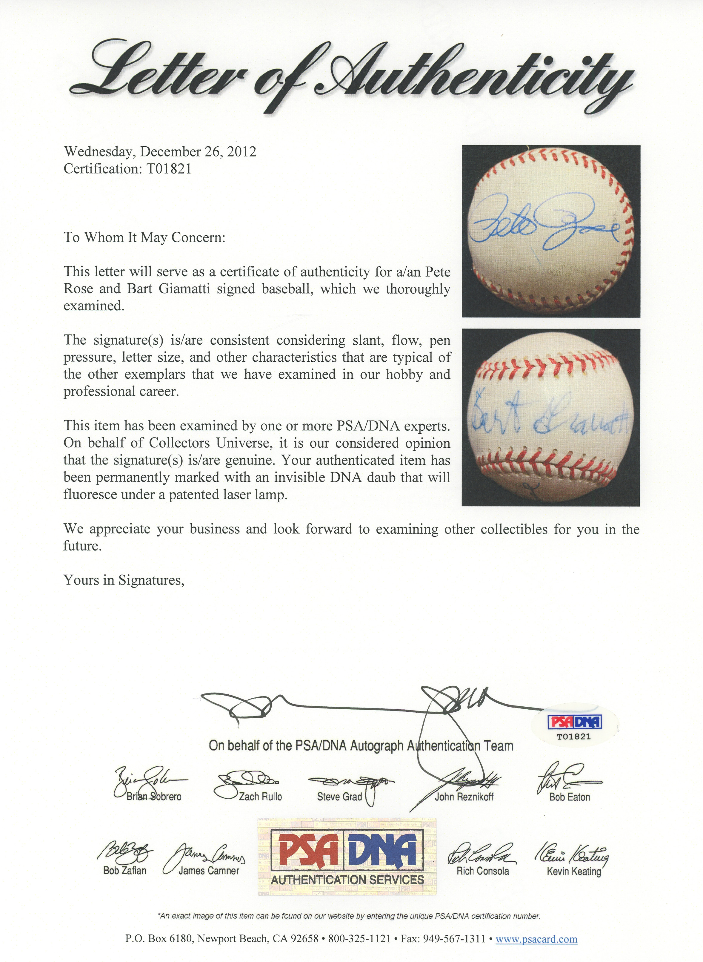 Strange bedfellows are paired, with this Pete Rose and Bart Giamatti dual-signed baseball.