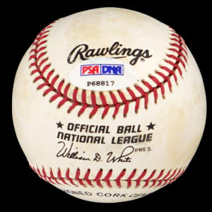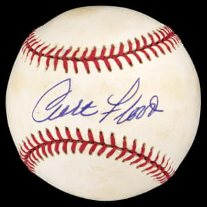 A lifetime .293 hitter with seven Gold Glove awards to his credit, Flood passed away at the relatively young age of fifty-nine in 1997, leaving his signature in short supply. Display-minded collectors will be pleased with this Flood signed ONL/White baseball, which he has adorned with a very bold sweet spot signature.