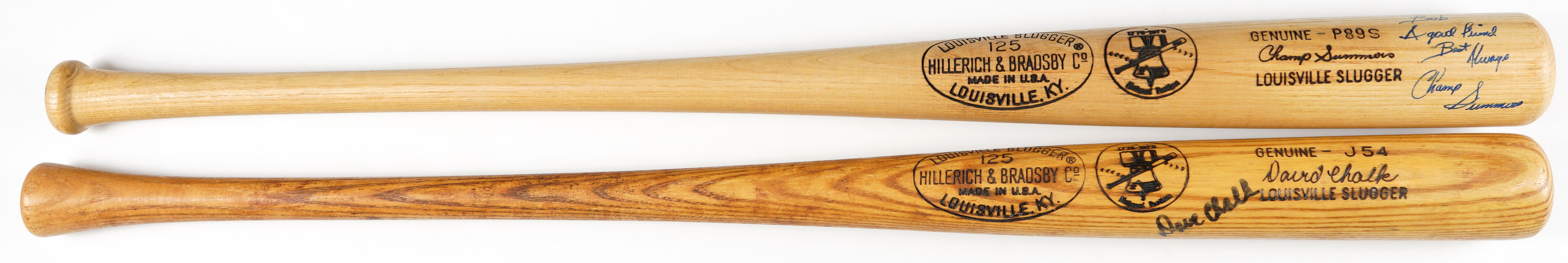 Louisville Slugger 125 Bicentennial Model “Genuine P89S Champ Summers Louisville Slugger” signed “To Bob, a good friend. Best always, Champ Summers” with no apparent use. Signature (“8-9”).