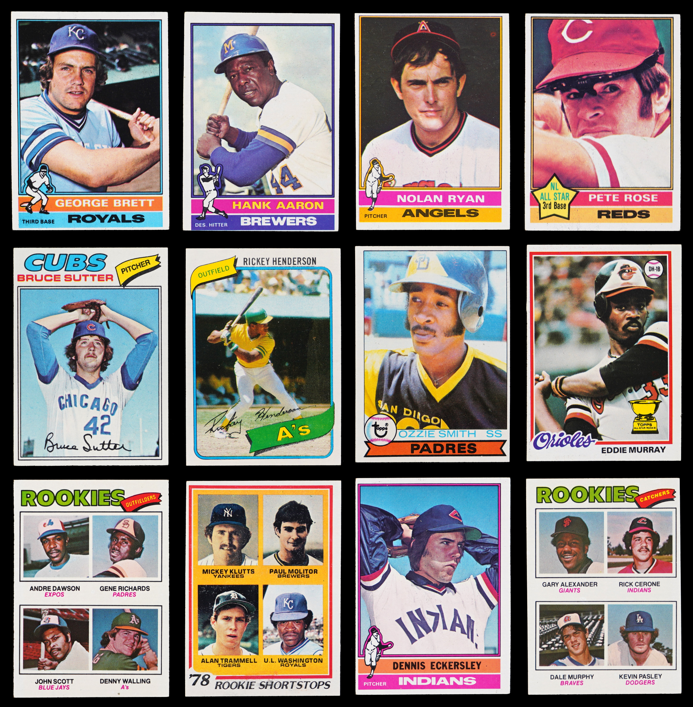 1976 Topps set: (660/660, average EX-MT, plus 44-card Traded) with #1 Aaron RB (VG), #19 Brett (EX), #98 Eckersley RC (VG-EX), #240 Rose (EX), #300 Bench (EX), #316 Yount (EX-MT), #330 Ryan (EX), #500 R. Jackson (EX-MT), #550 Aaron (VG), #650 Munson (EX);