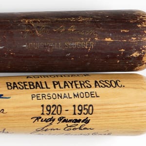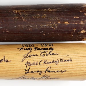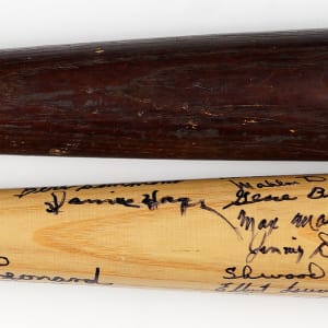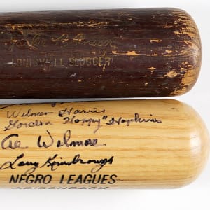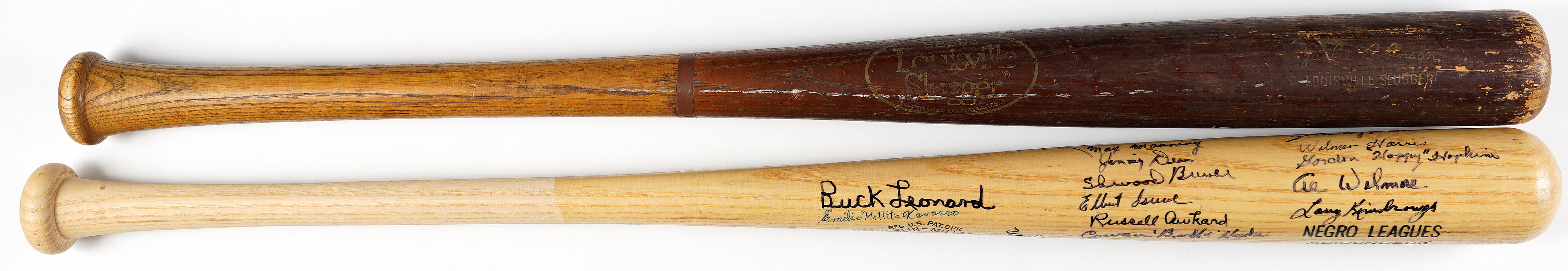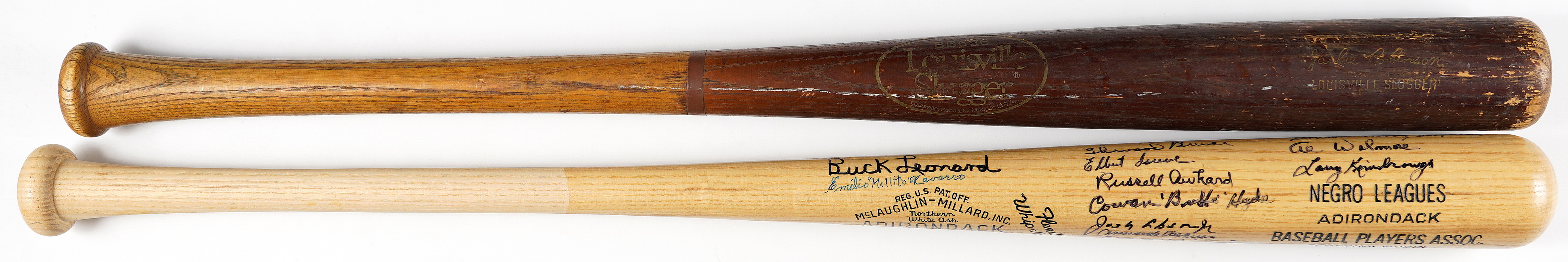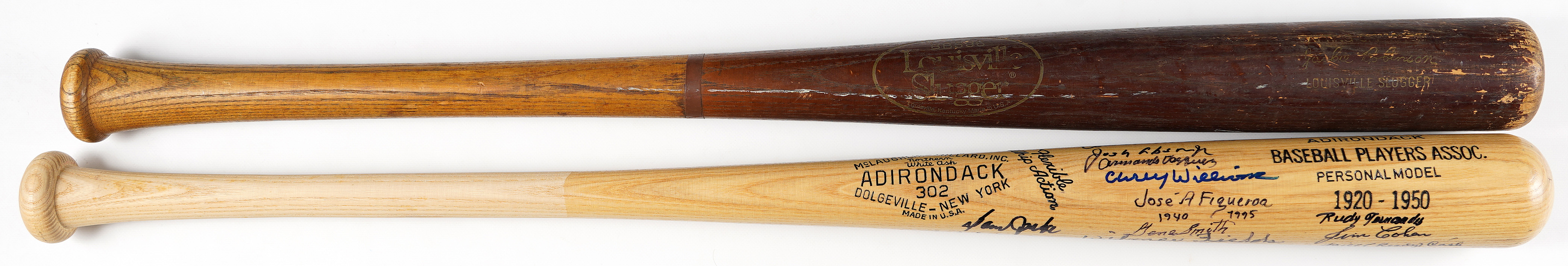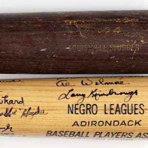 Signatures averaging (“7-9”) have been applied to this Adirondack 302 “Negro Leagues Baseball Players Assoc. Personal Model 1920-1950.” Including: Josh Gibson Jr., Armando Vazquez, Curly Williams, Jose A. Figueroa, Sam Jethro, Gene Smith, Rudy Fernandez, Jim Cohen, Wilmer Fields, Bert Simmons, Bill (Ready) Cash, Mahlon Duckett, Donnie Hayes, Gene Benson, Leroy ?, Stanley Glenn, Max Manning, Jimmy Dean, Wilmer Harris, Gordon “Happy” Hopkins, Al Wilmore, Buck Leonard, Elbert ?, Larry Kimbrough, Russell Awkard, Emilio “Mallito” Revarro, Cowan “Bubba” Hyde.