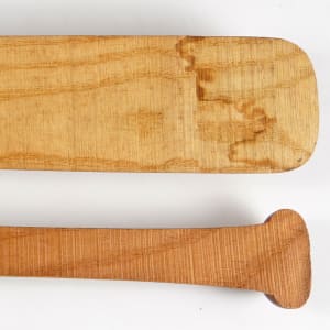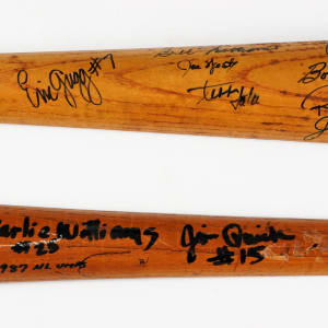 Signed in the 1980s by National League umpires, these two half-bats are in nice condition with nice signatures averaging (“8-9”).