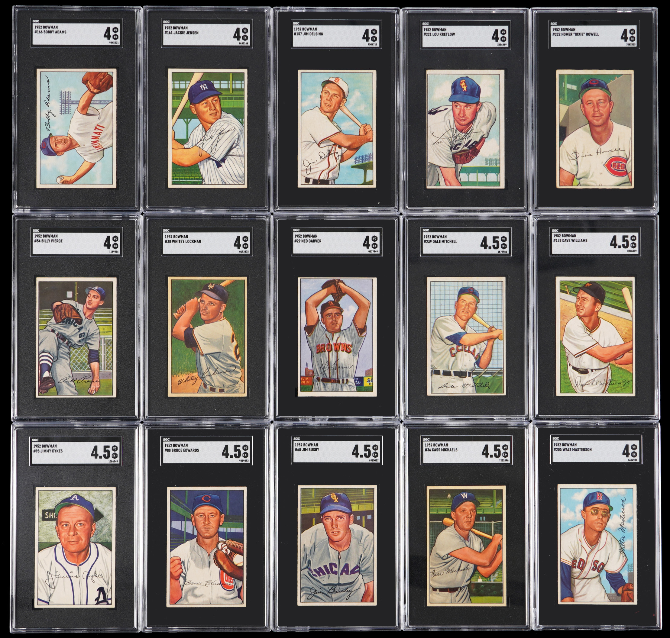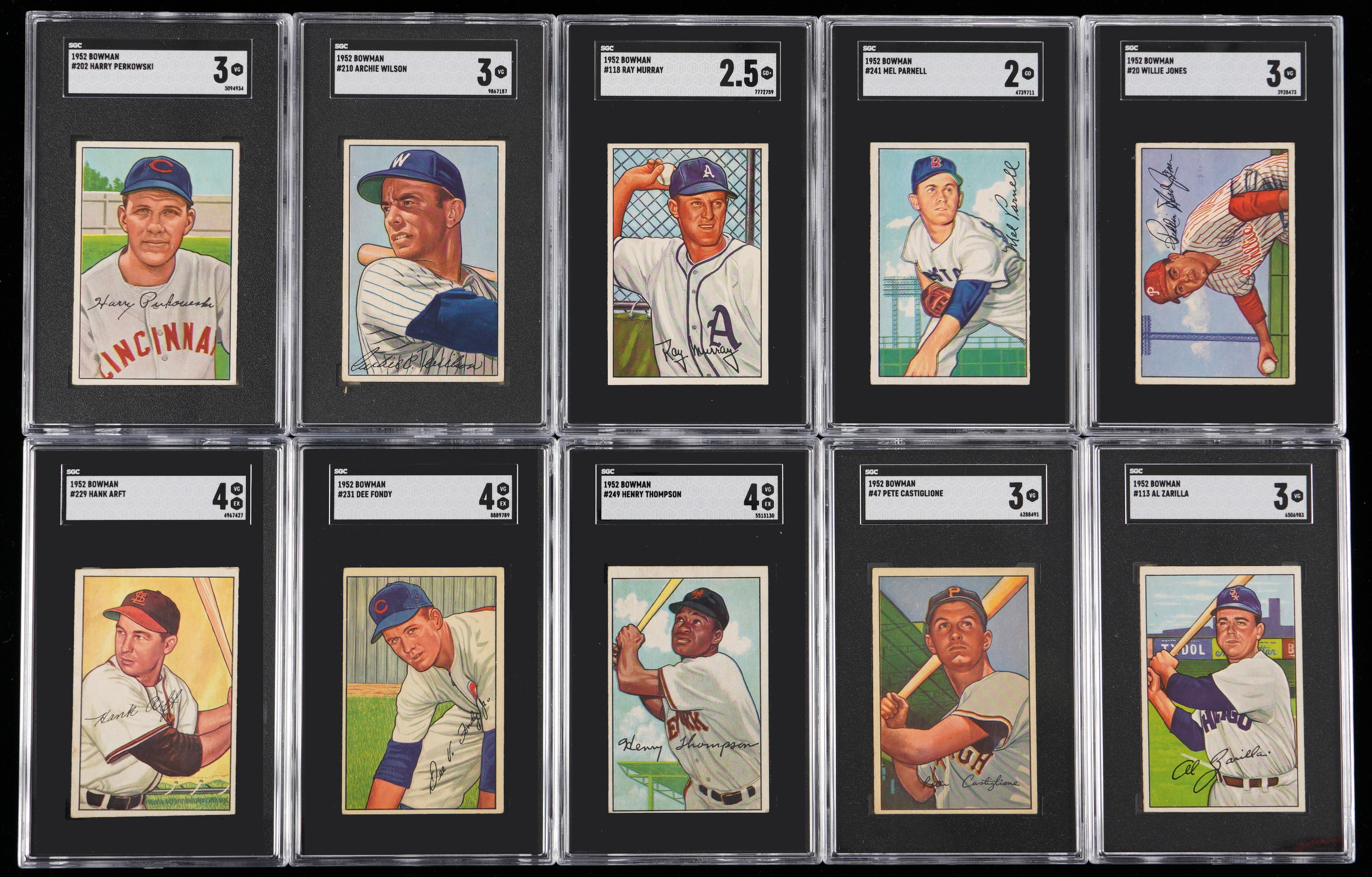 Supplement your 1952 Bowman project with these (25) SGC graded cards with seven tougher high numbers. Includes: