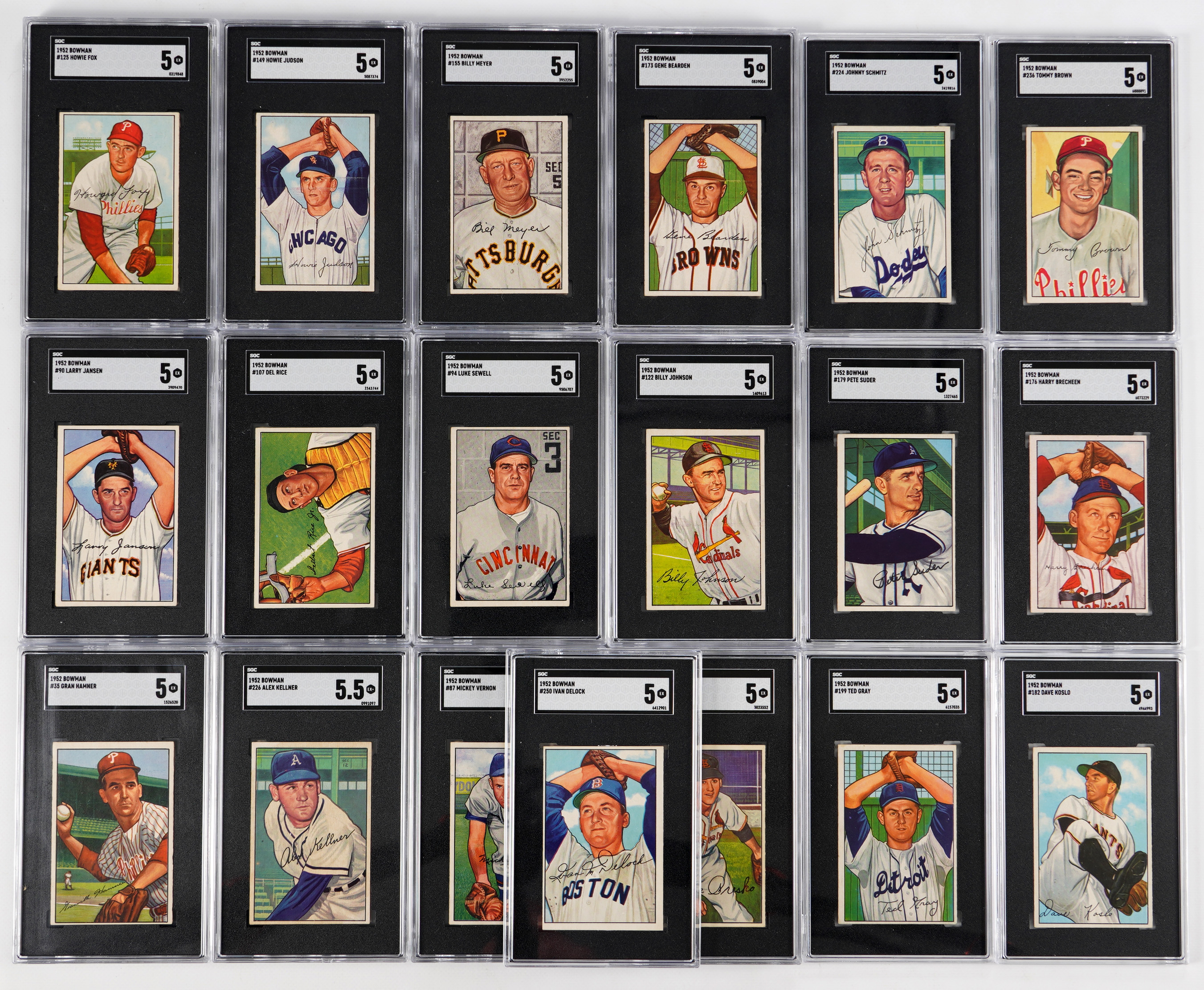 Each graded EX 5 or EX+ 5.5 by SGC. Swell assortment of (31) 1952 Bowman singles with a Hall of Famer and (6) tougher high numbers. Includes:
