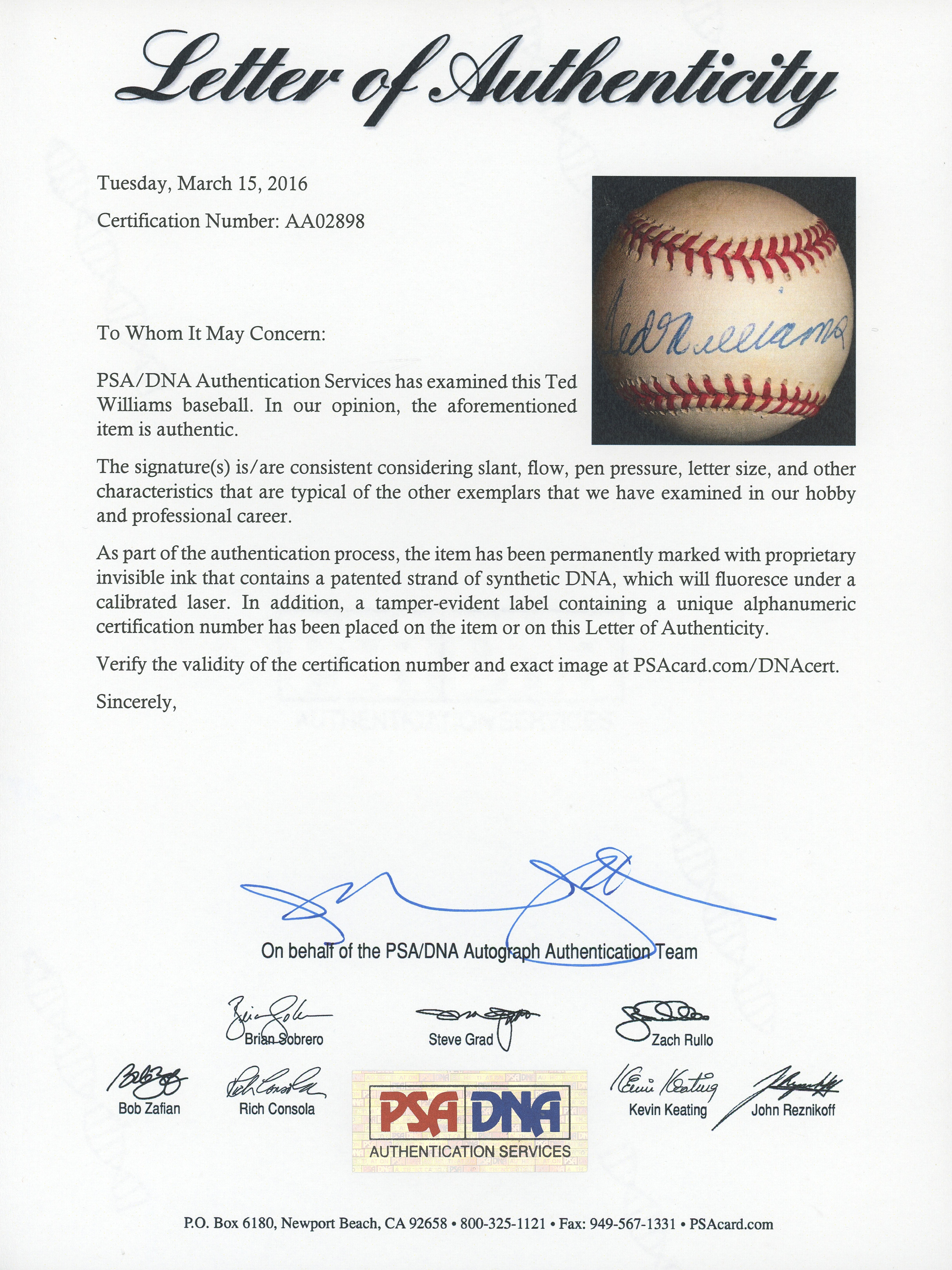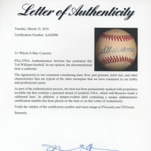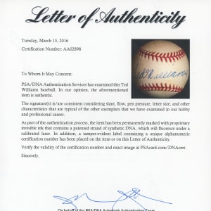 Double down on legendary slugger Ted Williams, with the capture of these (2) single-signed baseballs. Both balls are OAL/Brown models graced with satisfying sweet spot signatures. Light toning is noted, though both balls remain fairly clean, with plenty of display appeal.