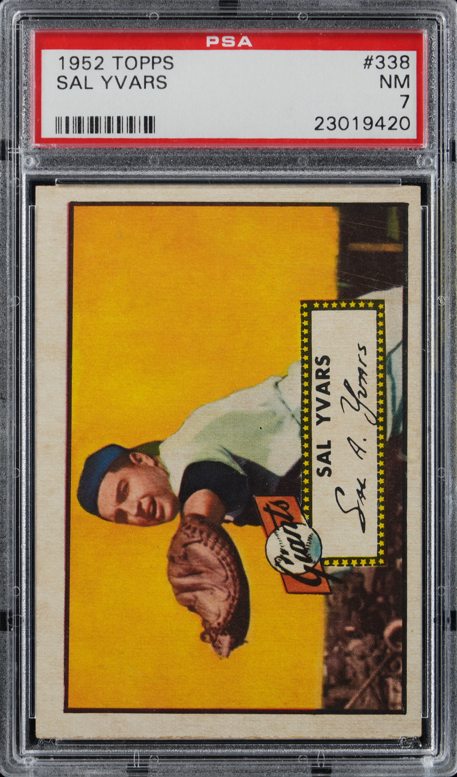 Graded NM 7 by PSA. New York Giants catcher Sal Yvars. High number.