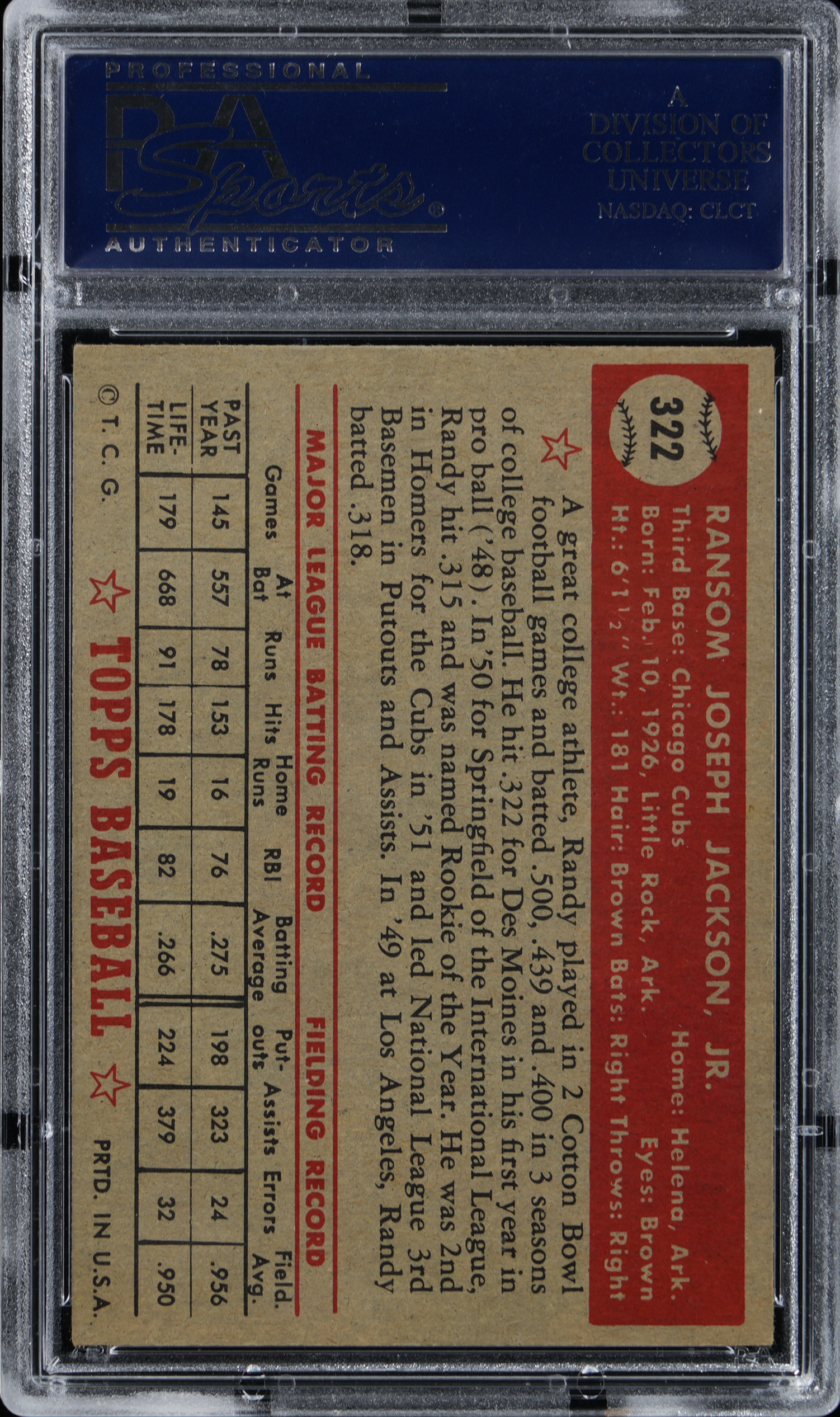 Graded EX-MT+ 6.5 by PSA. Chicago Cubs third baseman Randy Jackson. High number.