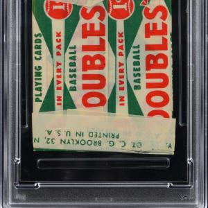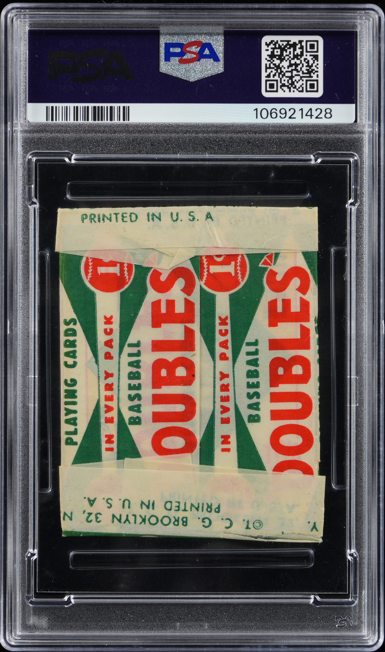 Graded NM 7 by PSA. Unsearched 1951 Topps Red Backs unopened pack. Features two connected cards per. Potentially find high-grade copies of Berra, Irvin, Kiner, Rizzuto, Snider, Spahn and many more Hall of Famers!