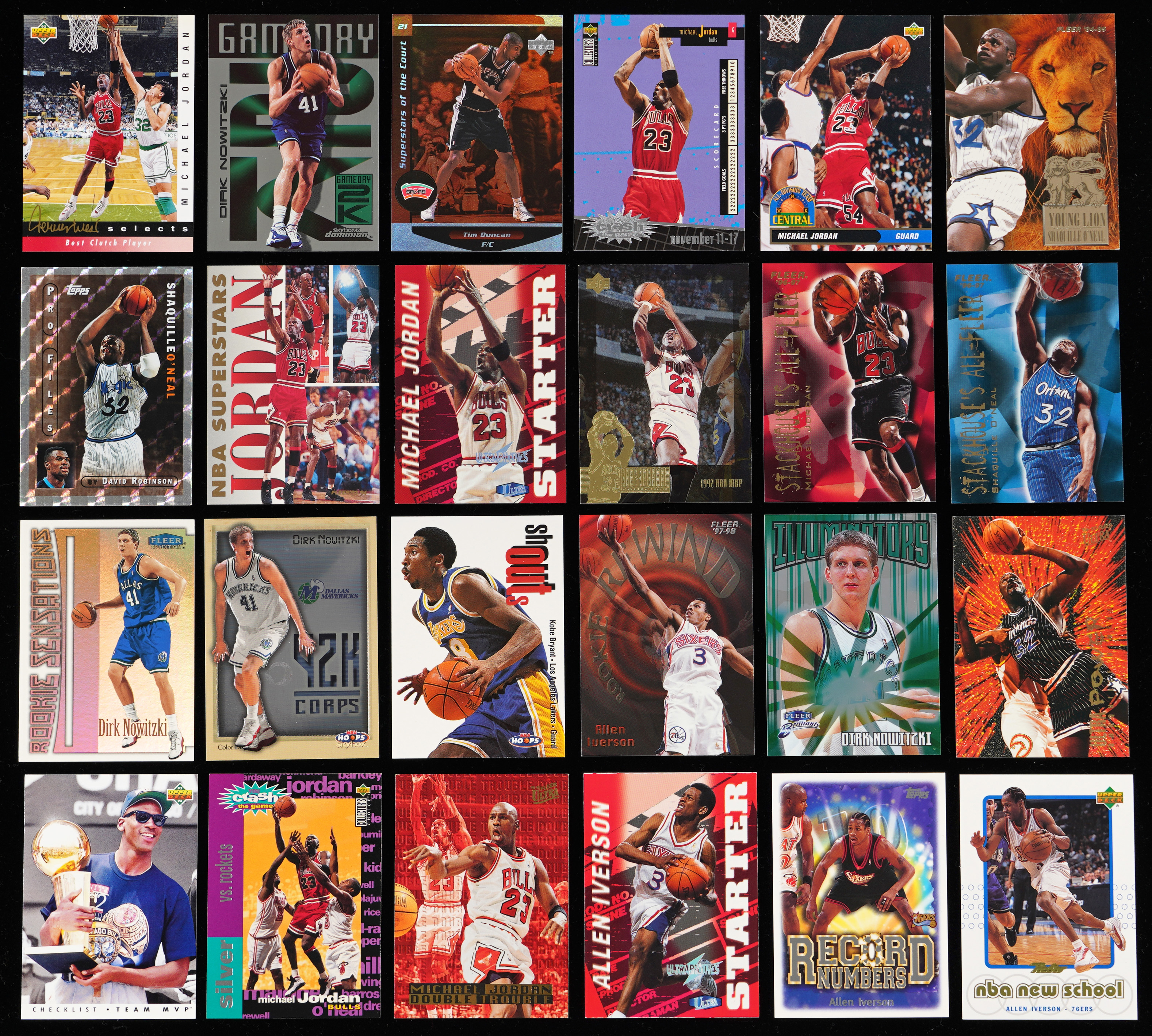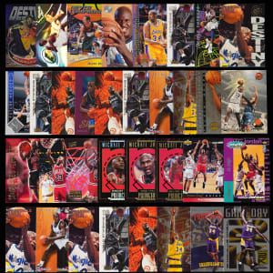 No Base Cards! It's a cardboard slamfest with the offered 1990s basketball insert and parallel collection of (3,250+) cards spanning the entirety of the decade. This modern dealer's delight is absolutely stacked with Hall of Famers and stars from a variety of issues. Varying quantities of the following legends are included: Iverson, Jordan, Nowitzki, S. O'Neal, D. Robinson and many others! The size/weight of this item requires that there will be an additional shipping charge for this lot.