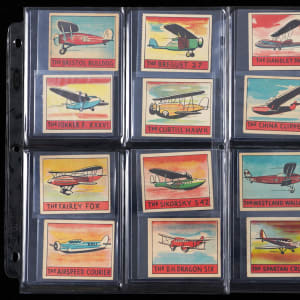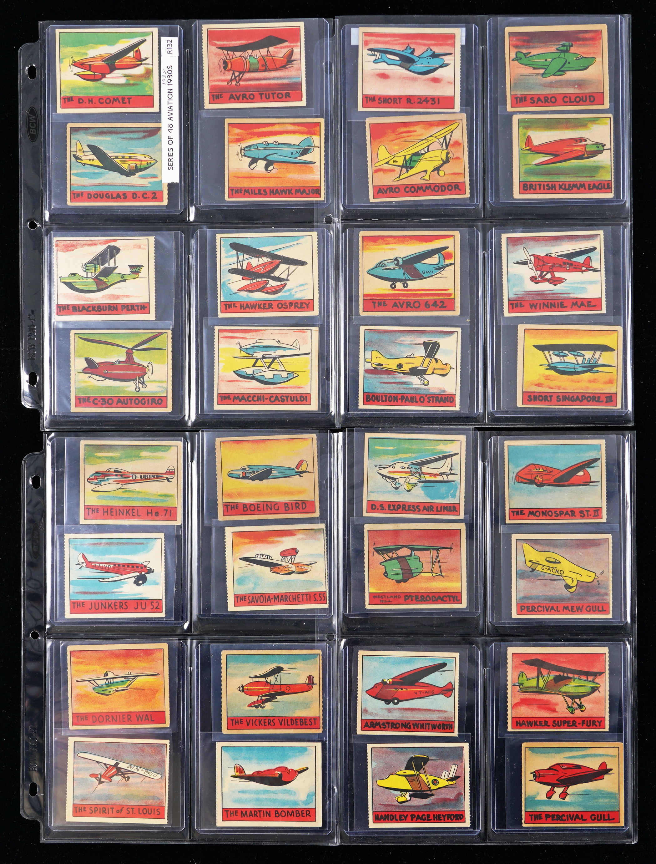 Explore the dawn of aviation with the offered 1938 R132 Anonymous Series of 48 complete set. These neatly separated perforated airplanes are quite clean with the majority averaging (EX-MT) condition with some better or lesser. Keys include: #301 "The D.H. Comet" (EX-MT) and #348 "The Wibault 28T" (VG-EX).