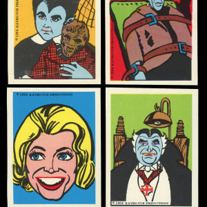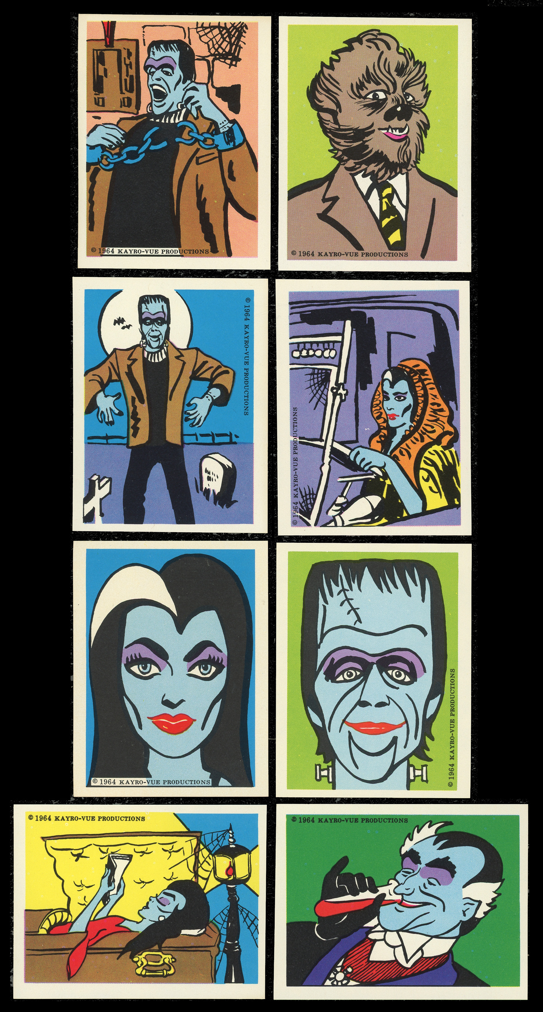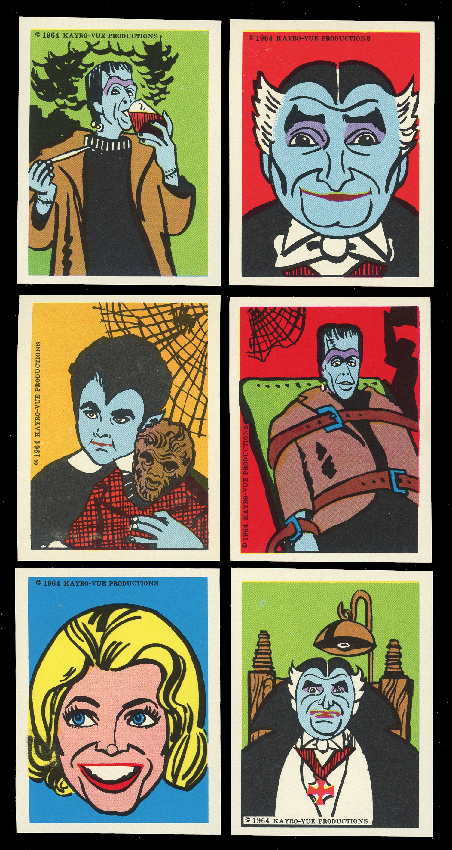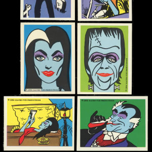 Pay your respects to Herman, Lilly, Grandpa and the rest of the gang with this immaculate 1964 Leaf The Munsters complete set of (16) stamps. These colorful portraits of the Transylvanian misfits are quite elusive and were issued one-per-pack to accompany the 72-card base set. Averages overall (NM) condition and the nearly 2-1/4 x 3" monstrous illustrations are ungummed.