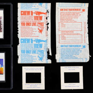Sophisticated James Bonds 007 fans will enjoy the offered 1967 Somportex Chew & Colour View James Bond You Only Live Twice complete set of (26) 3-card panels. These color slides average (NM) condition and feature sequences from the thrilling serial. Also present is a separated wrapper from the English-based edition and a pair of slide mounts. Tough issue!