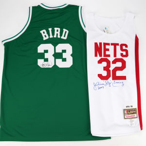 Julius ‘Dr J’ Irving “2007” signed red, white and blue New York Nets Erving “32” Hardwood Classics jersey with 1975/76 tagging.