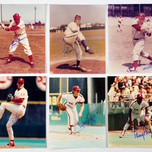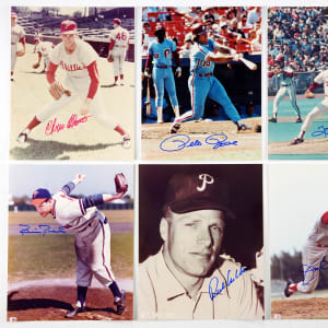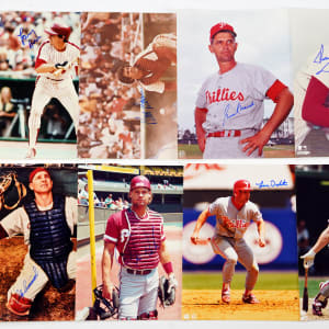 Celebrate the Philadelphia Phillies best teams of the 1950s-1990s, with this beefy bundle of (110+) signed photographs. These 8" x 10" photos take the field in crisp, clean condition, with generally potent signatures. Headed by the 1980 squad that won the franchise's first ever World Series championship, this comprehensive collection also boasts many of the top players from the 1950, 1983, and 1993 NL pennant winners, along with the infamous 1964 team that blew a sizeable September lead, to finish one win short of a postseason berth.