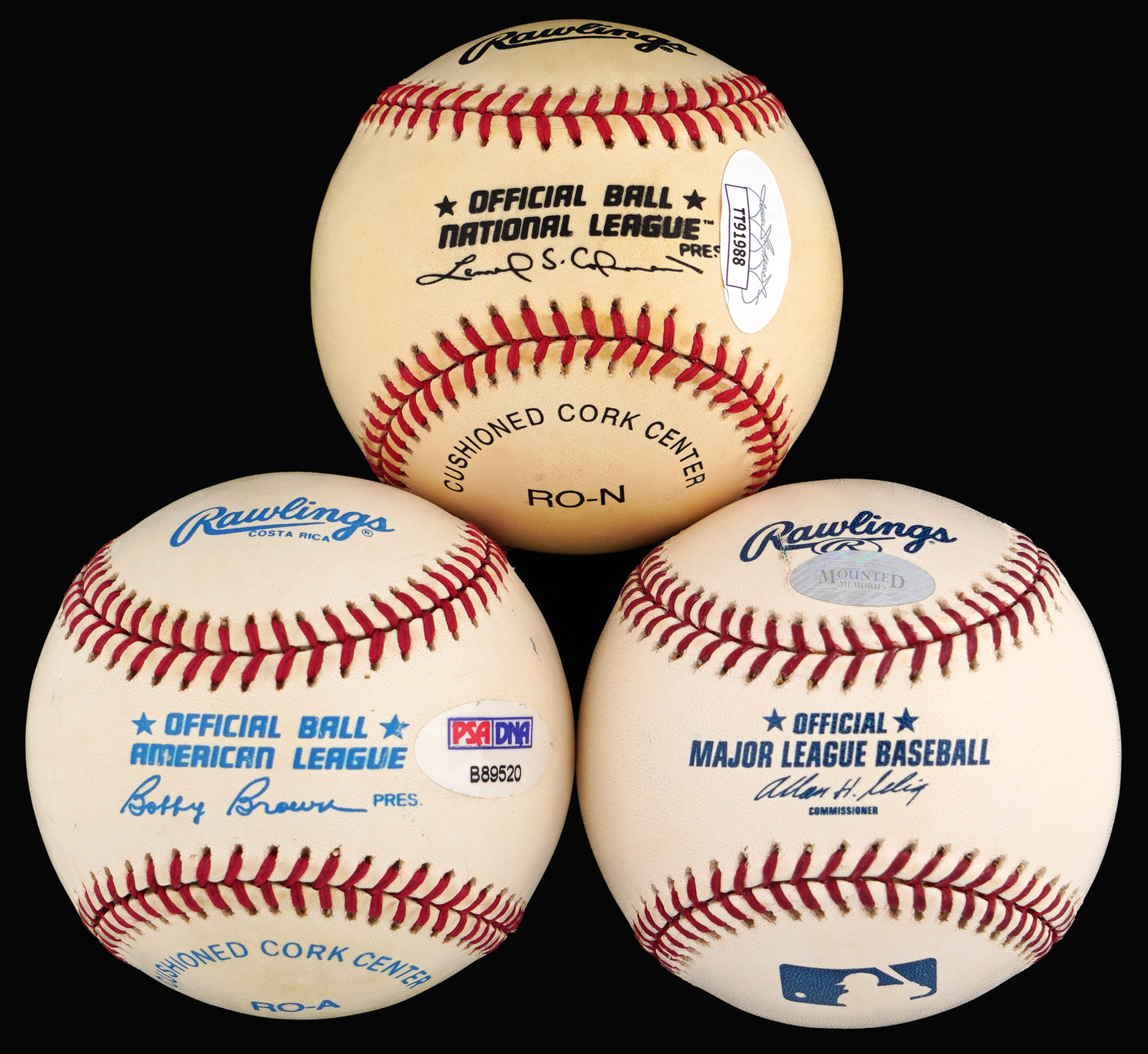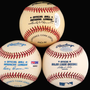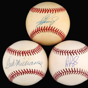 Ted Williams signed white AOL/Brown ball with ballpoint signature on the sweet spot grading (“9”) and PSA/DNA sticker with Full Letter of Authenticity.