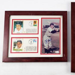 Yogi Berra signed (“9-10”) 5x9 photo in 16x13 display framed with (2) Yogi Berra First Day covers dated December 16th, 1983, and July 16th, 1988. Sticker and Basic Cert from James Spence/JSA.