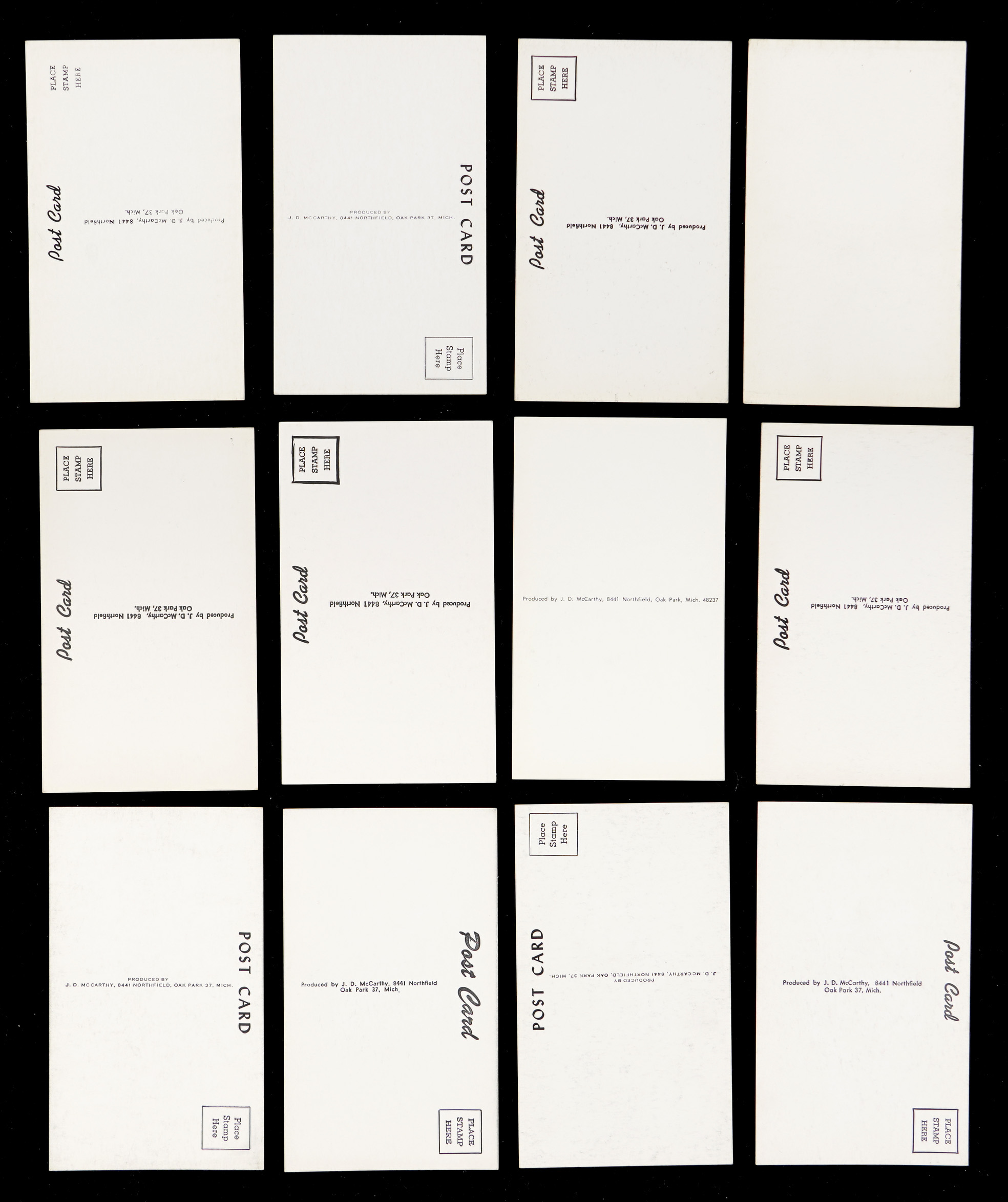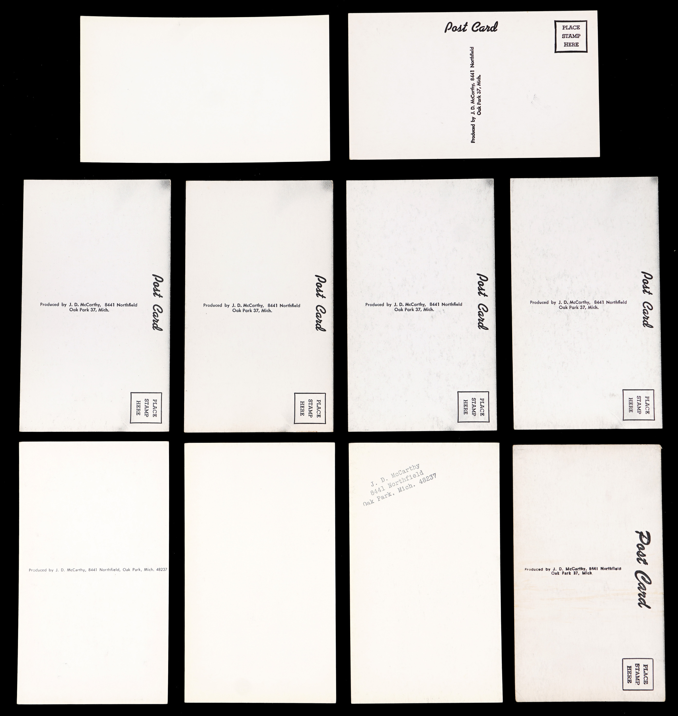 Bridging the gap between major Topps and Fleer Basketball releases, this early accumulation of (90) 1957-1970 J.D. McCarthy postcards is a fine archive of the hometown Detroit Pistons and New York Knicks franchises. These black-and-white postcard, company and blank backs are far scarcer than the baseball releases and generally present in the (EX to EX-MT) range with some better or lesser. Only a handful of postcards have been marked on the reverses. Includes: