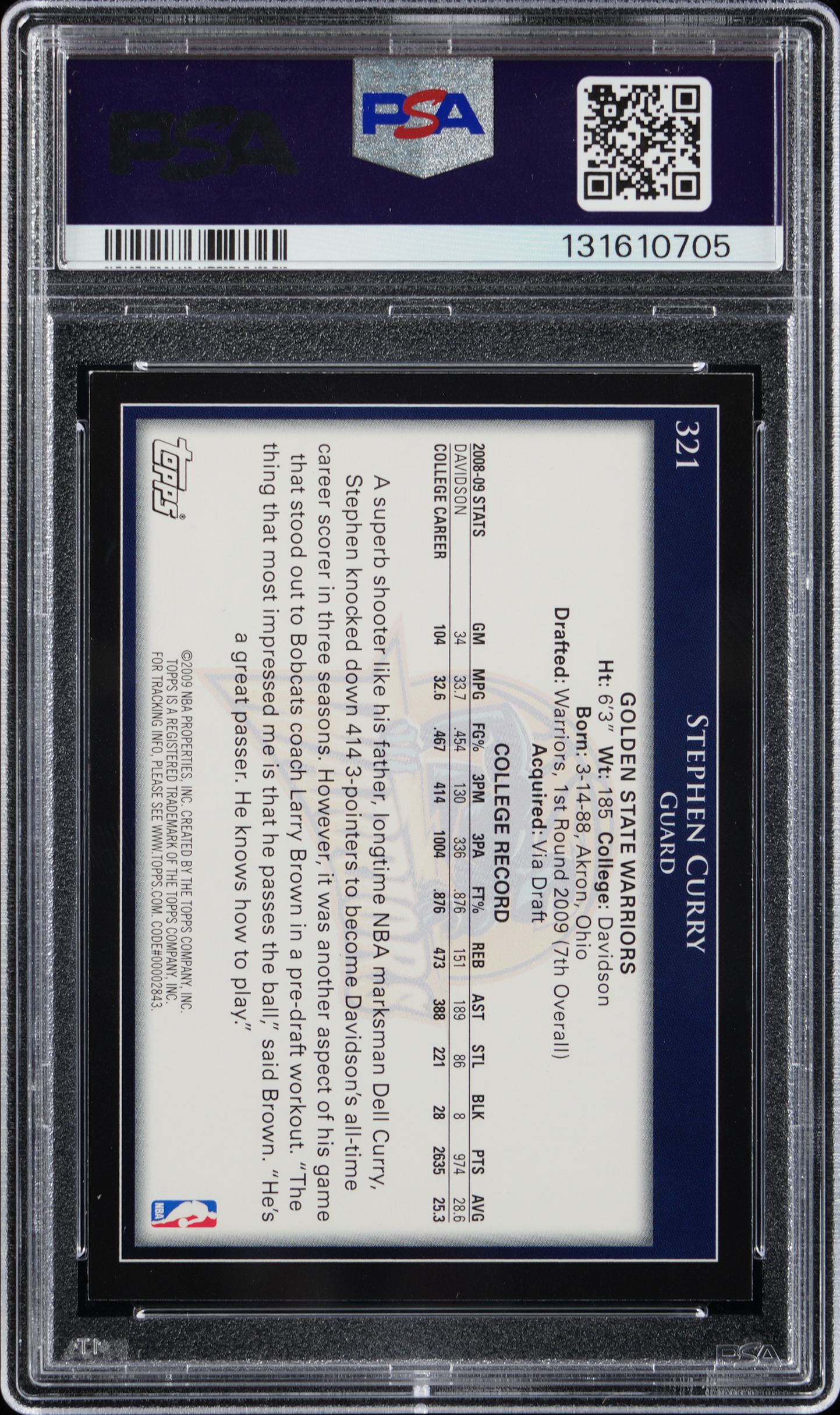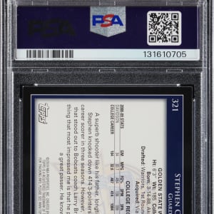 Splash! Graded NM-MT 8 by PSA. The NBA's all-time three point leader is cleanly pictured on the offered 2009-10 Topps Basketball #321 Stephen Curry rookie card. Golden State Warriors legend and future Hall of Famer.