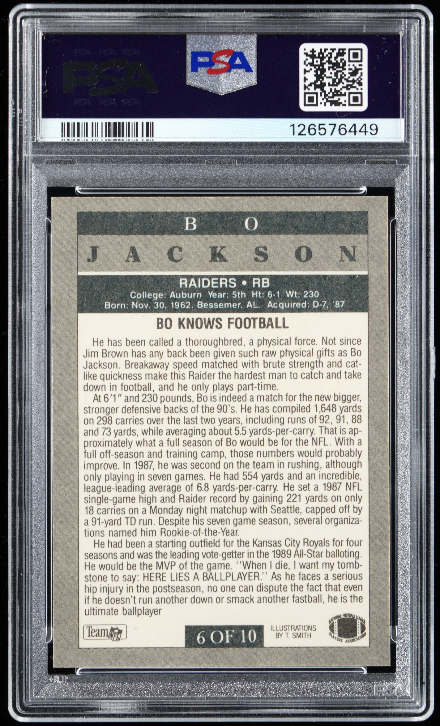 Graded GEM MINT 10 by PSA. Pristine early 1990s football insert of Bo Jackson!