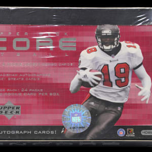 Demand far exceeds supply for the offered 2000 Upper Deck Encore Football unopened hobby box. This factory sealed container will deliver (24) 5-card packs plus a "bonus graded rookie card" per box. The base set contains 220 cards. In addition to potential Tom Brady rookie cards, a variety of parallels and memorabilia inserts are seeded throughout. The stated pack odds is as follows:
