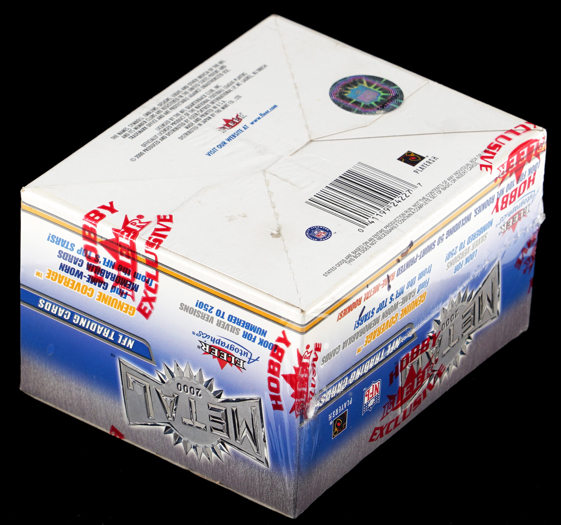 It will be a bidding showdown for the offered 2000 Fleer Metal Football unopened hobby box. This factory sealed container (with original price marked on cellophane) will contain (28) 10-card packs. Unwrap high-grade Hall of Fame rookie cards of Tom Brady and Brian Urlacher! In addition to the 250-card base set, a variety of modern inserts and parallels are potentially available at the following pack odds:
