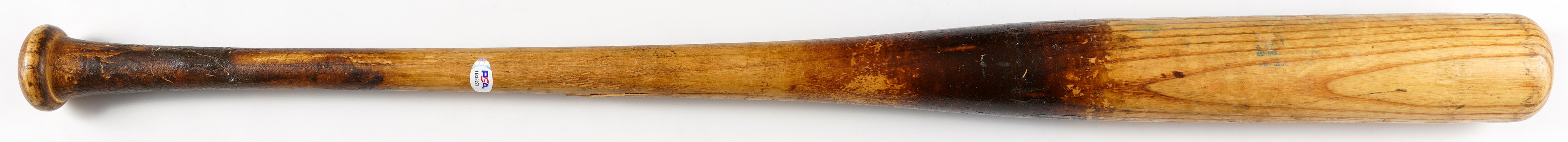 Outstanding Wade Boggs game-used and autographed bat dating from his tenure with the New York Yankees (1993–1997), gradedGU 9 by PSA/DNA. Manufactured by Louisville Slugger (model B349), the bat displays use consistent with Boggs’ trademark hitting precision. The bat displays outstanding use, including numerous ball marks, stitch impressions, and cleat marks, with pine tar residue on the handle. Boggs has added his signature to the barrel as well. A five-time batting champion and Hall of Famer, Boggs was a key offensive force during his Yankees years, including their 1996 World Championship run. High-grade, authenticated examples of Boggs game bats from this era are increasingly scarce, particularly those combining strong use characteristics with an exceptional autograph. A superb game-used relic from one of baseball’s most consistent hitters, ideal for any advanced Yankees or Hall of Fame collection. Full LOA from John Taube of PSA/DNA. Auction LOA from James Spence/JSA. The size/weight of this item requires that there will be an additional shipping charge for this lot.