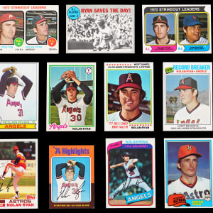 Strikeout master Nolan Ryan dominates with these (56) 1969-1990 Topps singles. The Hall of Fame ace is highlighted by the following:
