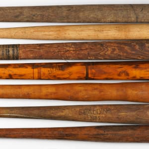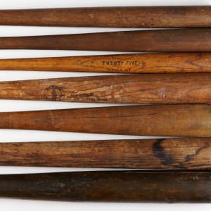These (14) early store model bats include some that may have been individually fabricated, as they have no stampings or markings. All of them show the kind of use you would expect from back when “The National Pastime” was truly everywhere. There are one or two with repaired cracks. The average grade is Good to Very Good.