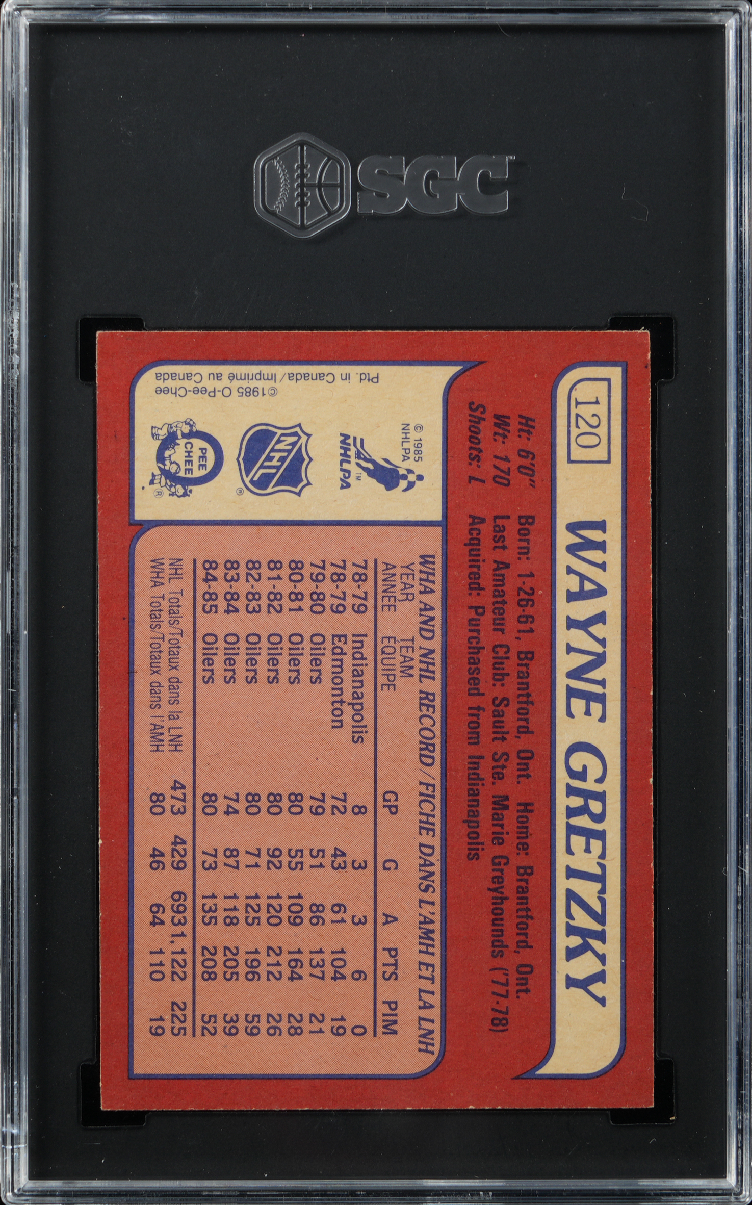 Graded NM+ 7.5 by SGC. Edmonton Oilers Hall of Fame legend Wayne Gretzky. Canadian issue.