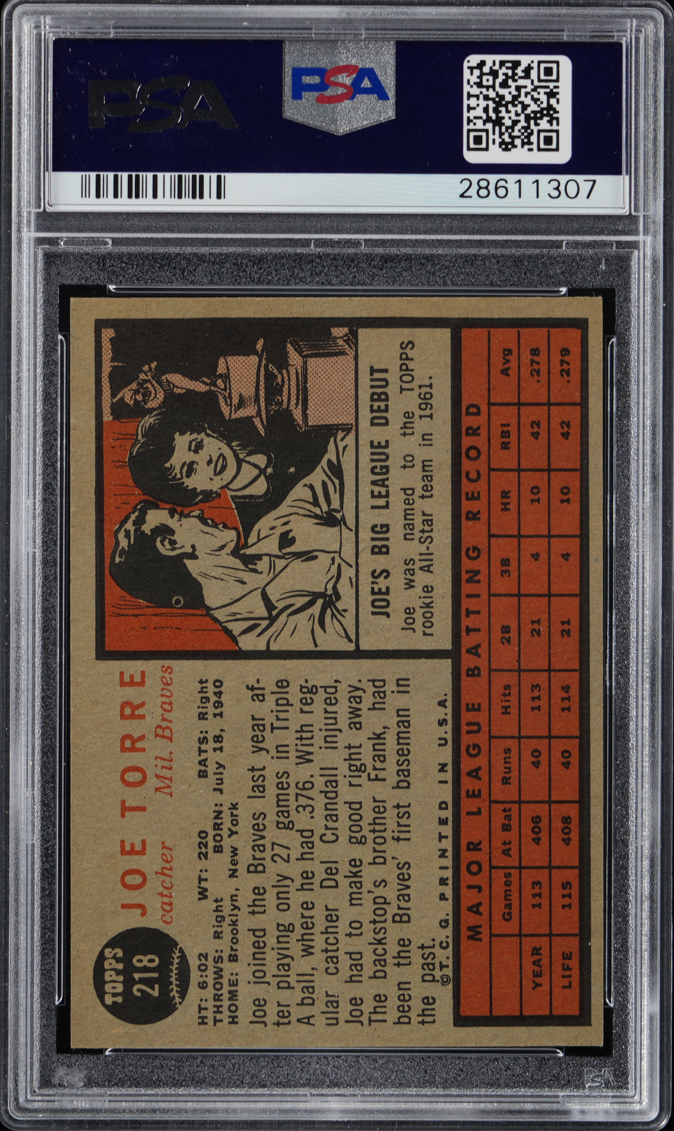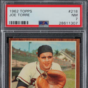 Graded NM 7 by PSA. Future Hall of Fame manager Joe Torre is pictured during his rookie season with the Milwaukee Braves.