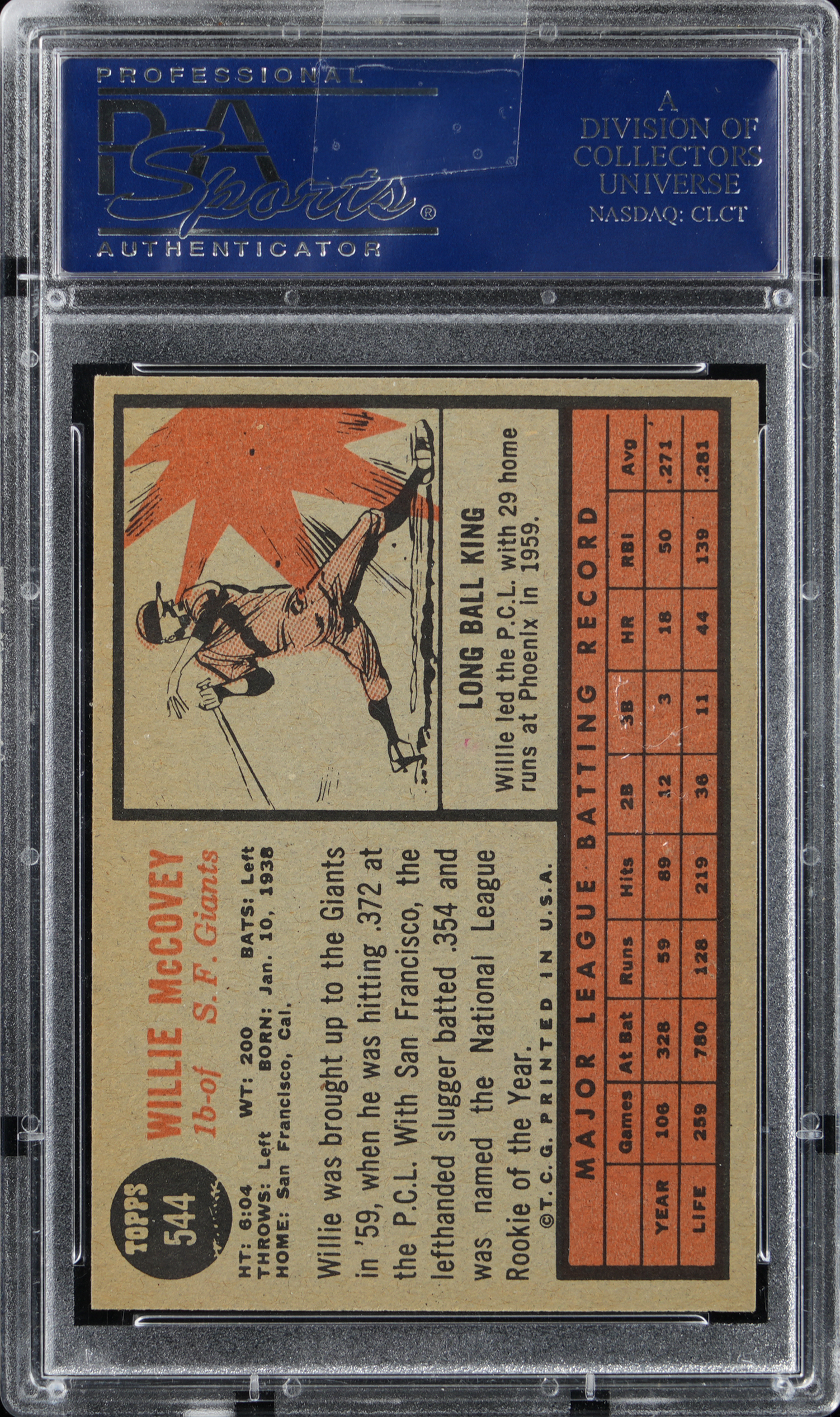 Graded NM 7 by PSA. "Stretch" your bidding budget for the offered 1962 Topps #544 Willie McCovey high number. This shortprint presents at the zenith of its overall evaluation. San Francisco Giants Hall of Famer.