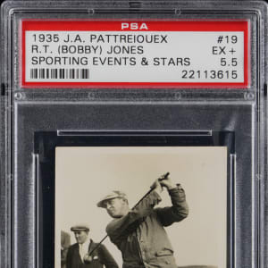 Graded EX+ 5.5 by PSA. An English-based tobacco card of World Golf Hall of Famer Bobby Jones.