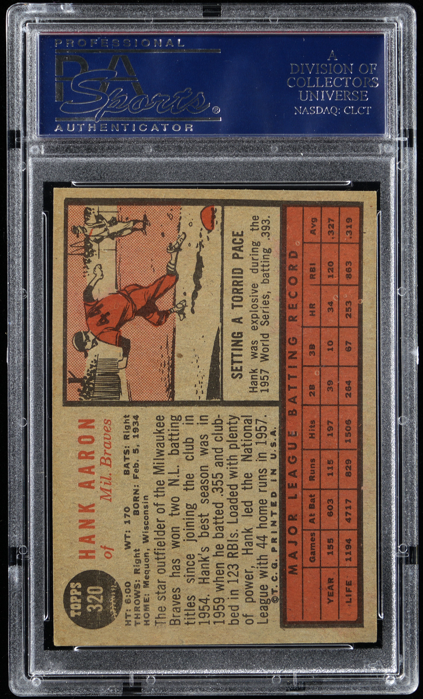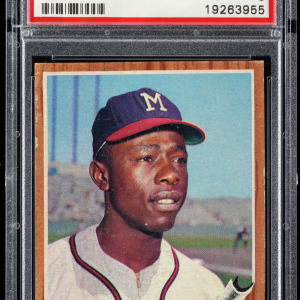 Graded EX 5 by PSA. Milwaukee Braves Hall of Fame slugger Hank Aaron.