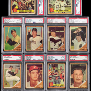 This hazy 1962 Topps green tint subset of (87) cards with a dozen PSA graded is “a must” for master set completists! These condition sensitive wood borders are highlighted by the following: