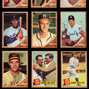 Ungraded: (75 cards, average EX-MT to NM) with #129 Walls (EX-MT, Pinstriped Jersey), #134 Hoeft (EX-MT, Green Sky), #139 Ruth Hits 60 (EX, Pole in Background), #140 Gehrig/Ruth (NM), #147 Kunkel (EX-MT, Ball in Hand), #170 Santo (EX-MT), #174 Willey (EX, with Cap), #175 F. Howard (EX-MT), #190 Moon (EX-MT, with Cap)