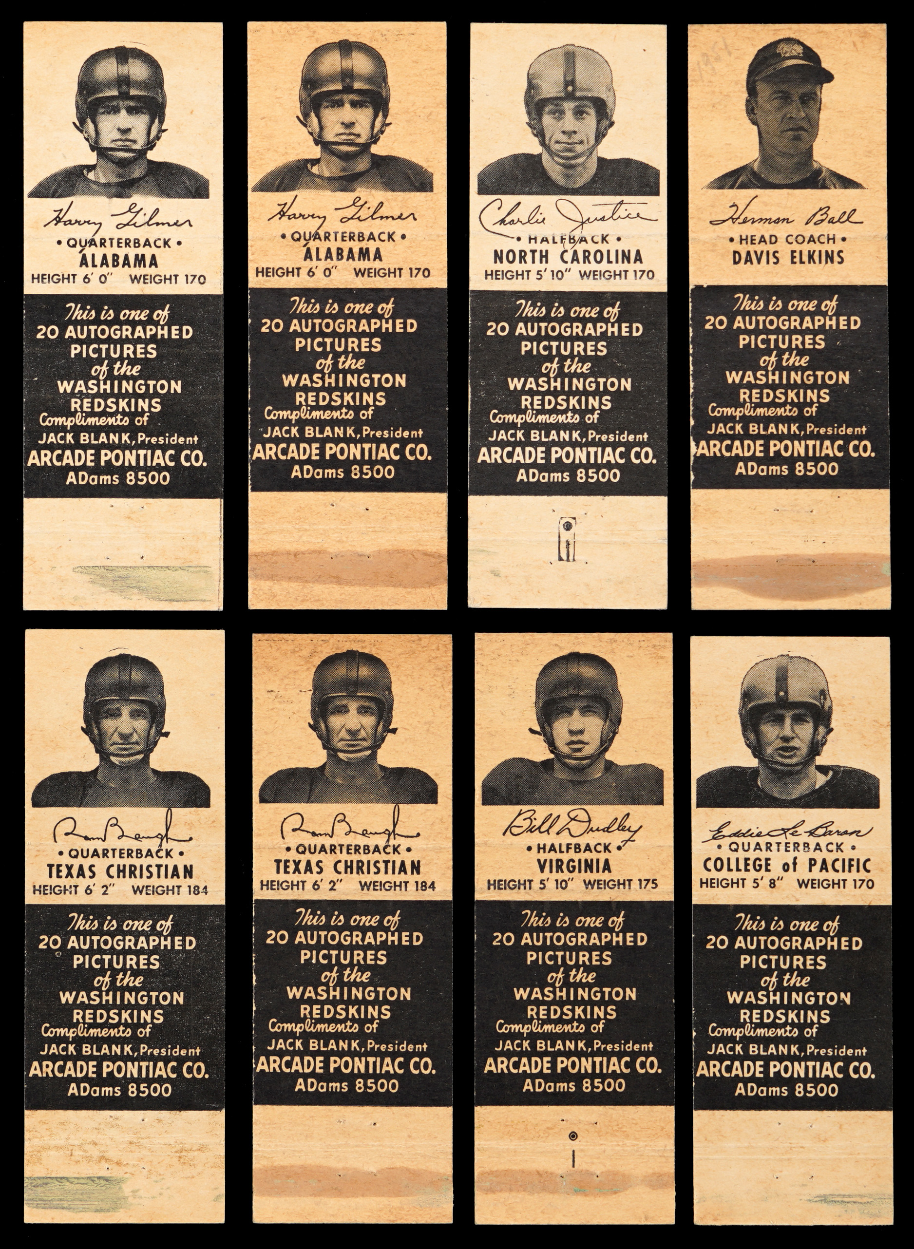 1952 Washington Redskins Arcade Pontiac set: (19/19, average EX to EX-MT) with Baugh (EX), Gilmer (EX), Justice (EX-MT), LeBaron (EX)