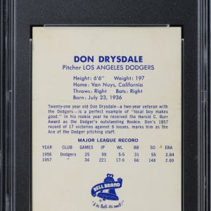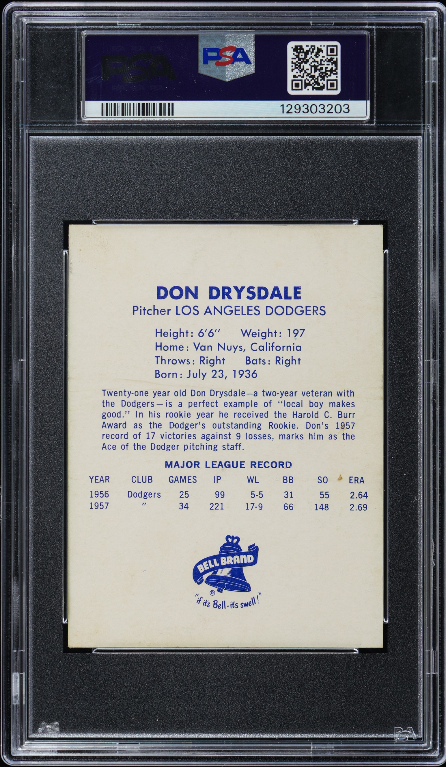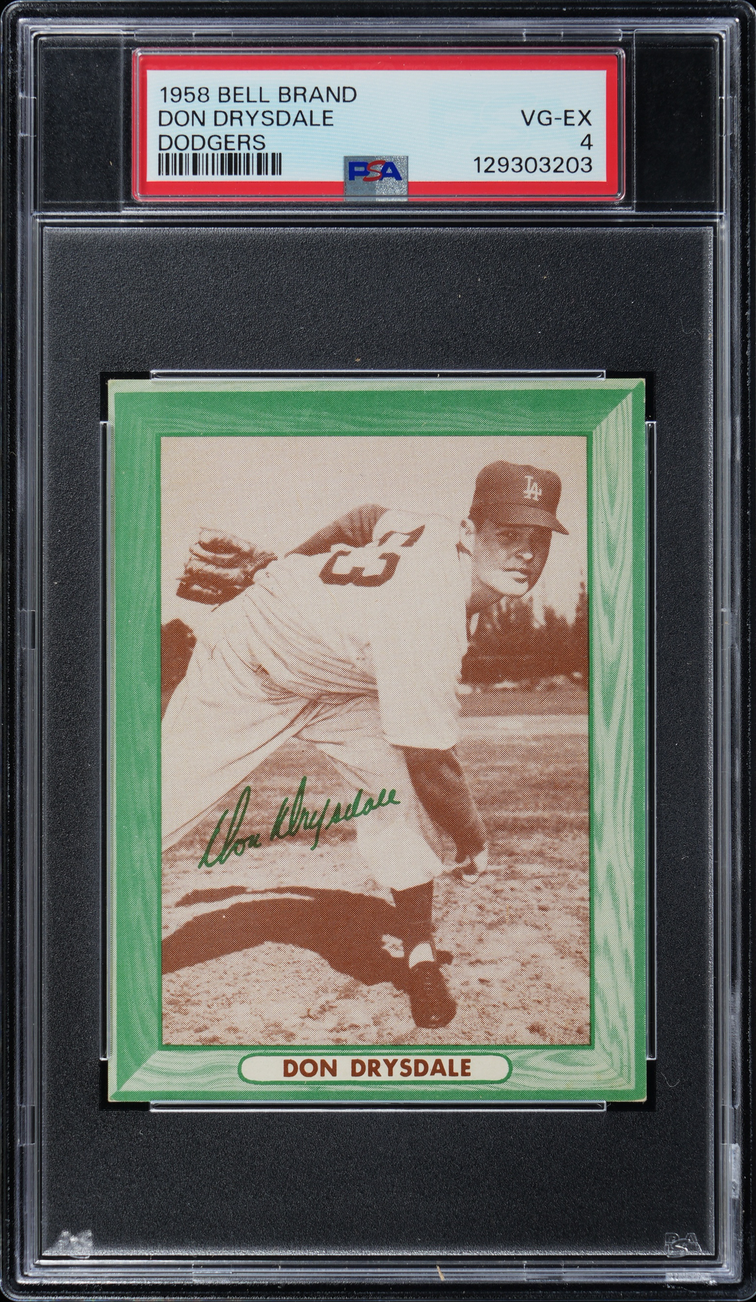 Graded VG-EX 4 by PSA. Los Angeles Dodgers Hall of Fame pitcher Don Drysdale.